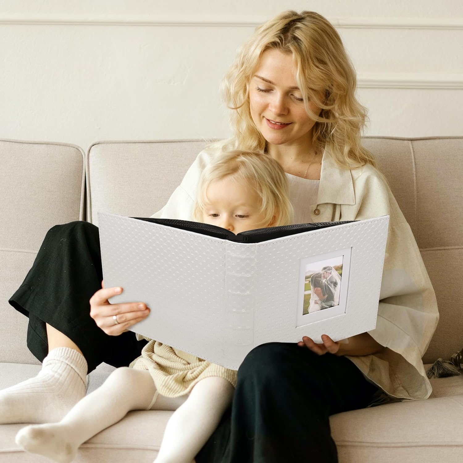 RECUTMS Photo Album 4x6 800 Photos Large Capacity Memories Photo Album for Wedding Family Baby Anniversary Pictures Leather Cover Picture Album Book with Black Inner Pages(White)