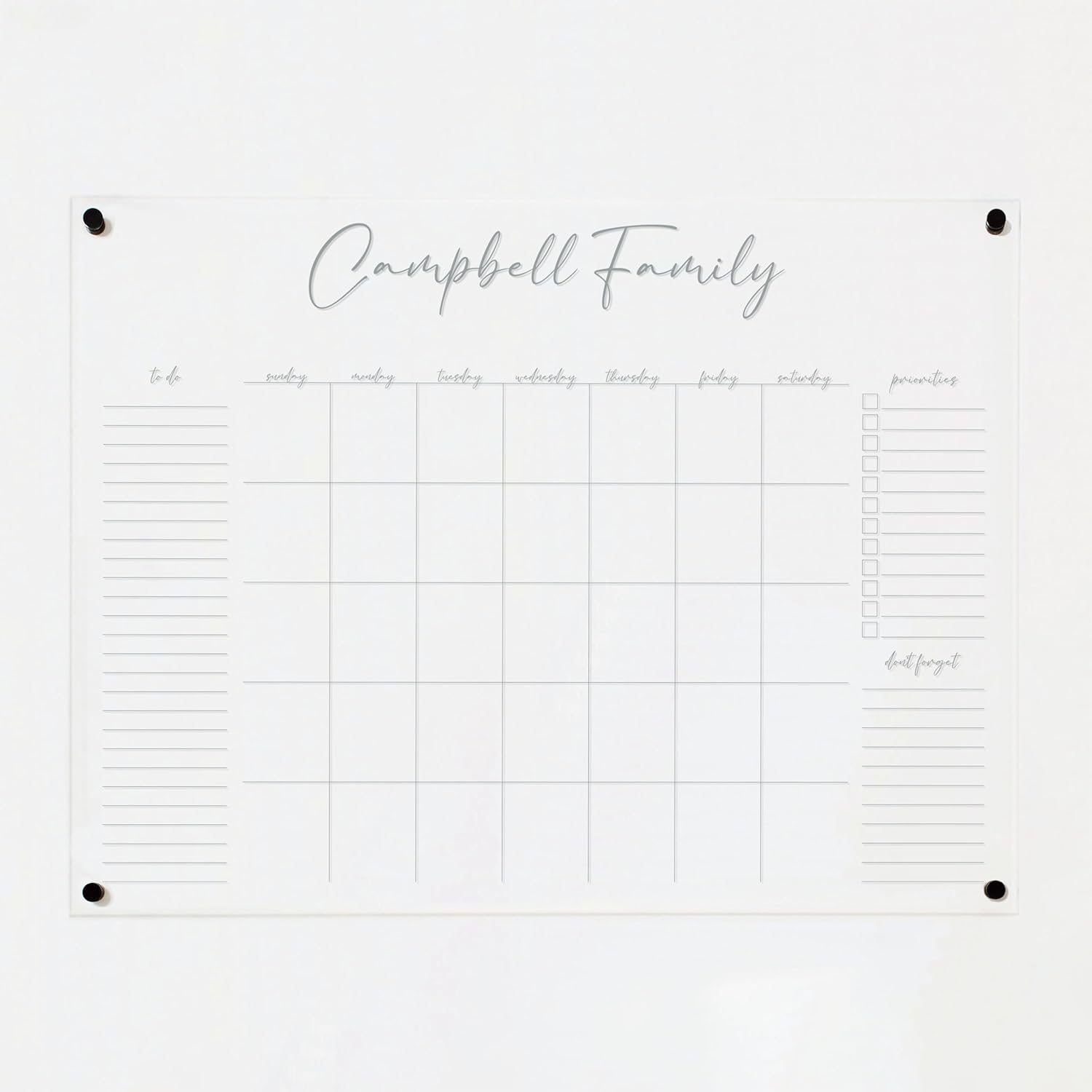 Personalized Clear Acrylic Calendar for Wall, Calendar Whiteboard for Wall, Dry Erase Wall Calendar, Wall Calendar Organizer System for Home (Cursive, Grey, 47.5"W x 36"H)