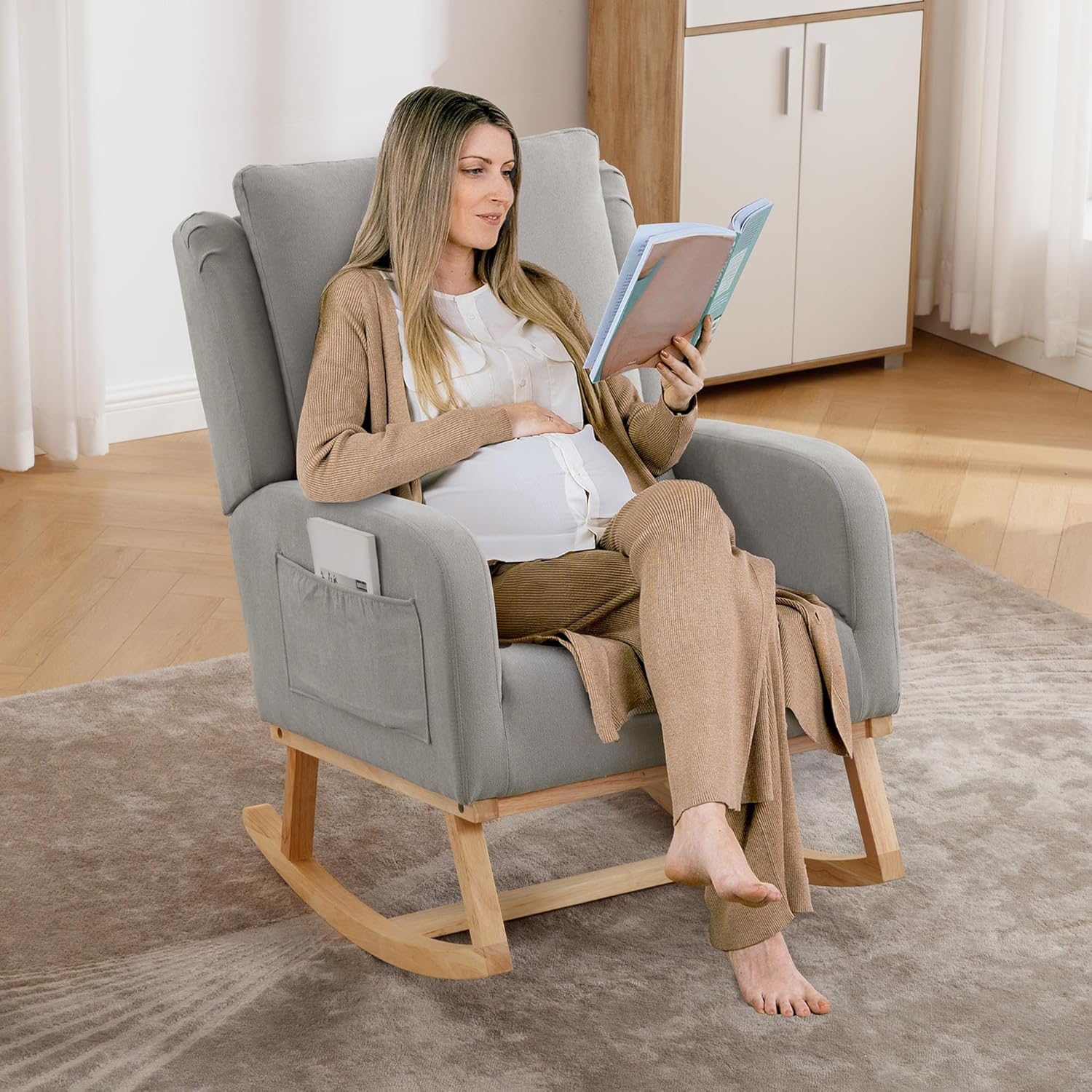 - 【Safe Rocking Function】The rocking design of the rocking chair with drop-proof chair legs is the best choice for mothers to put their babies to sleep, the angle range of the rocking is 80°-130°, in addition, babies can also sit on the morden rocking chair to rest or read books, through the smooth rocking to relax.