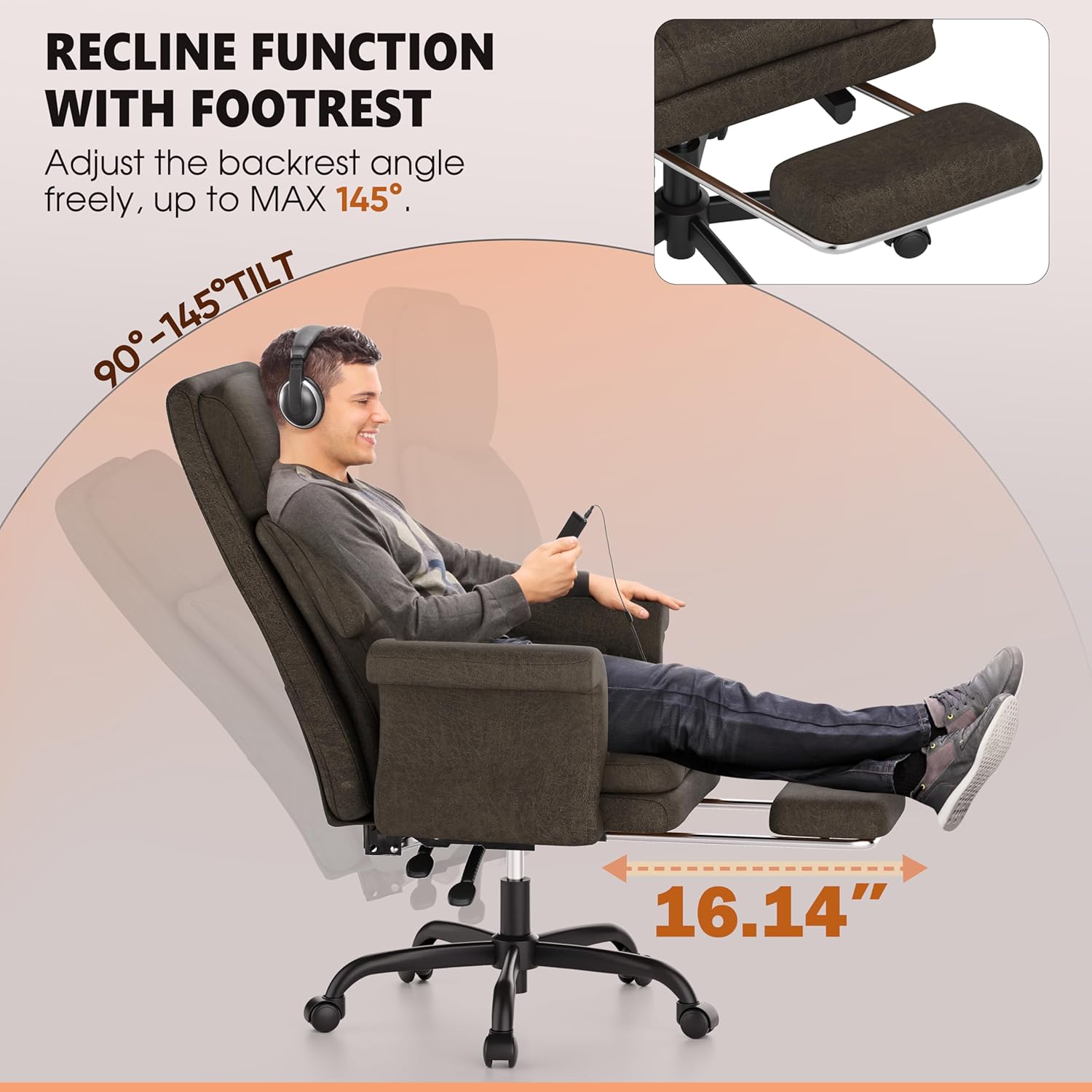 - CUSTOMIZABLE ERGONOMIC SUPPORT: Recline smoothly from 90Β° to 145Β°. Enjoy versatile 5-angle armrest adjustments for perfect elbow and shoulder alignment in any sitting position. Tailor every detail to your body.