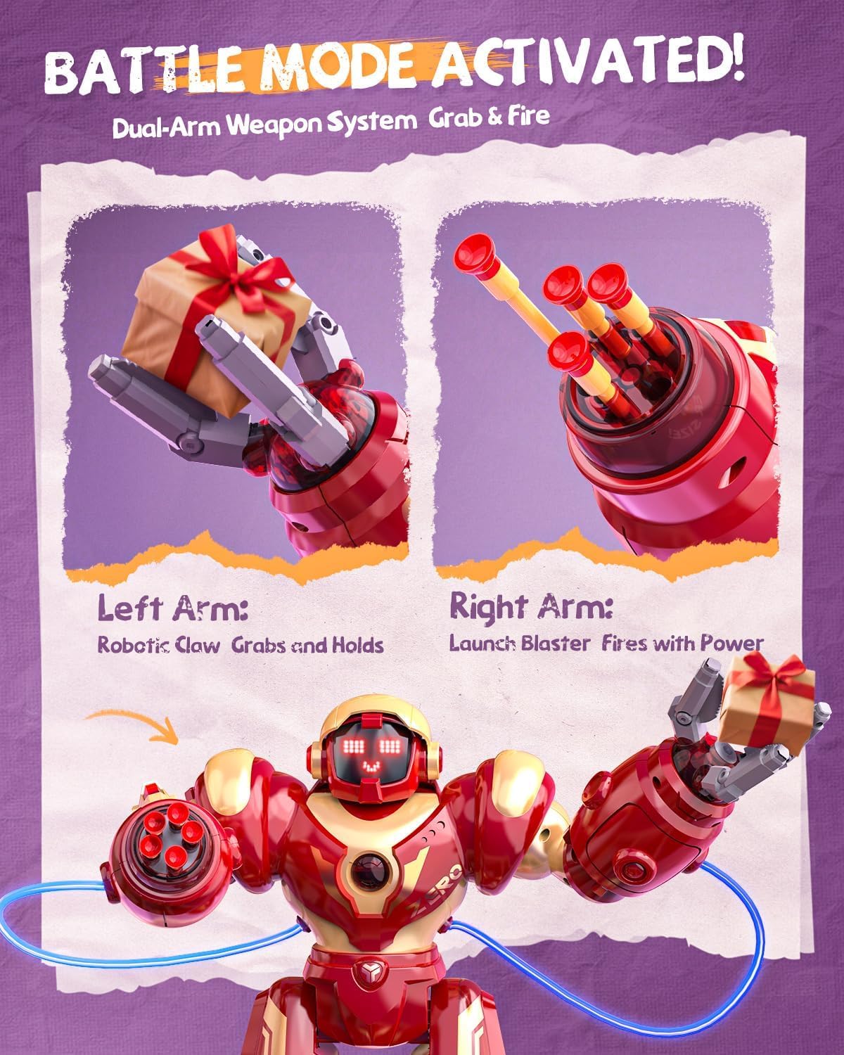 - 【Action-Packed Features That Kids Love】More than just lights, dancing, and demo modes — the Holyton 5088 brings action to life with its gripping arm and soft-bullet launcher, letting kids grab objects and fire foam darts for safe, thrilling play. Plus, built-in voice dialogue and music features make every interaction feel like playing with a real robot friend