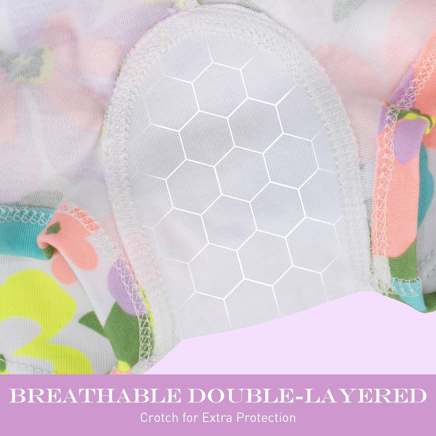 - DOUBLE-LAYERED CROTCH FOR ADDED PROTECTION – Designed with durability in mind, the breathable double-layered crotch adds extra protection and long-lasting comfort. Whether for daytime activities or overnight wear, these toddler panties offer reliable support.