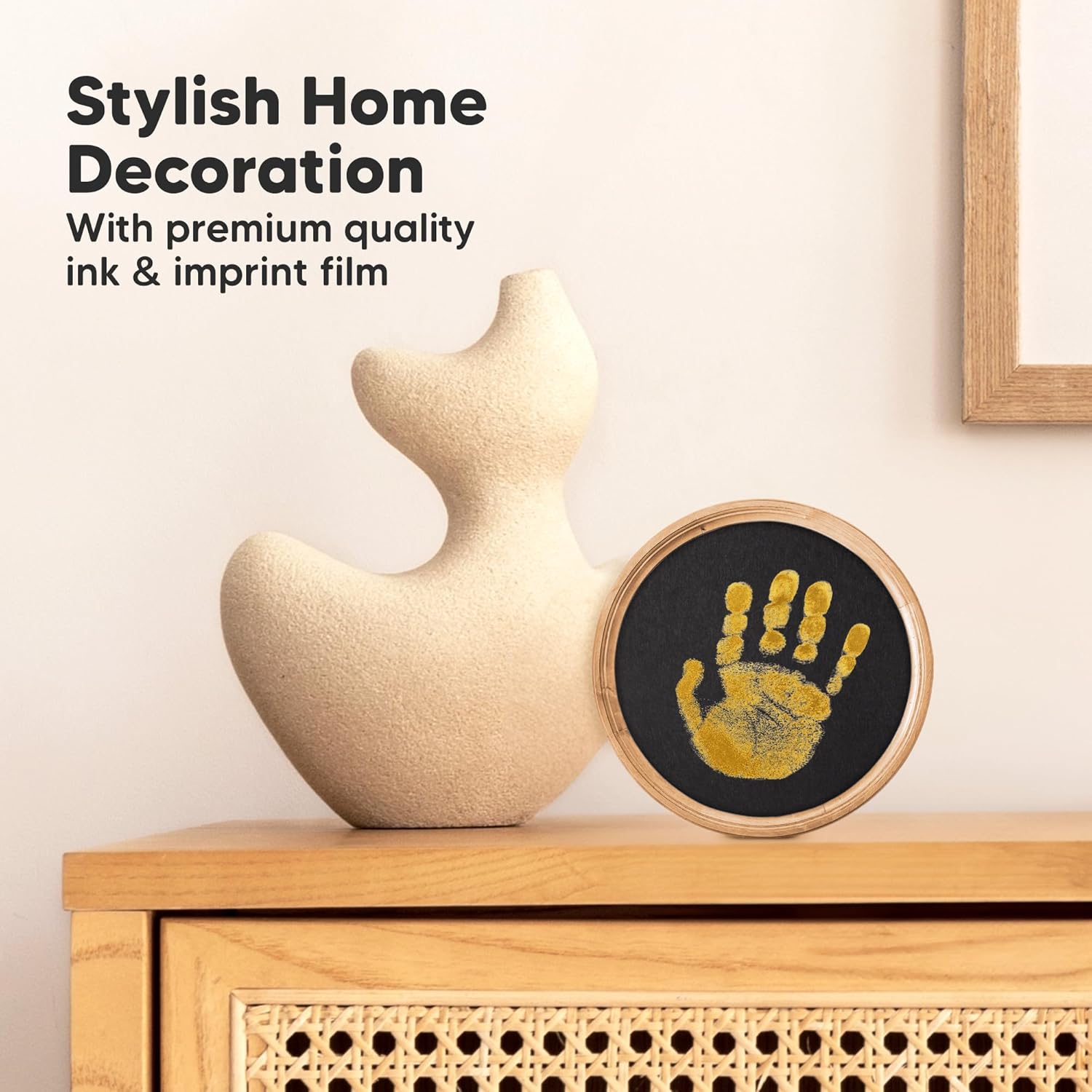 2-Pack Round Inkless Baby Hand and Footprint Kit - Mess Free Ink Pad for Newborn Keepsake, Dog Nose & Paw Print Kit, Clean Touch Ink Pad for Baby Hand & Footprints, Ideal New Mom Gifts (Gold)