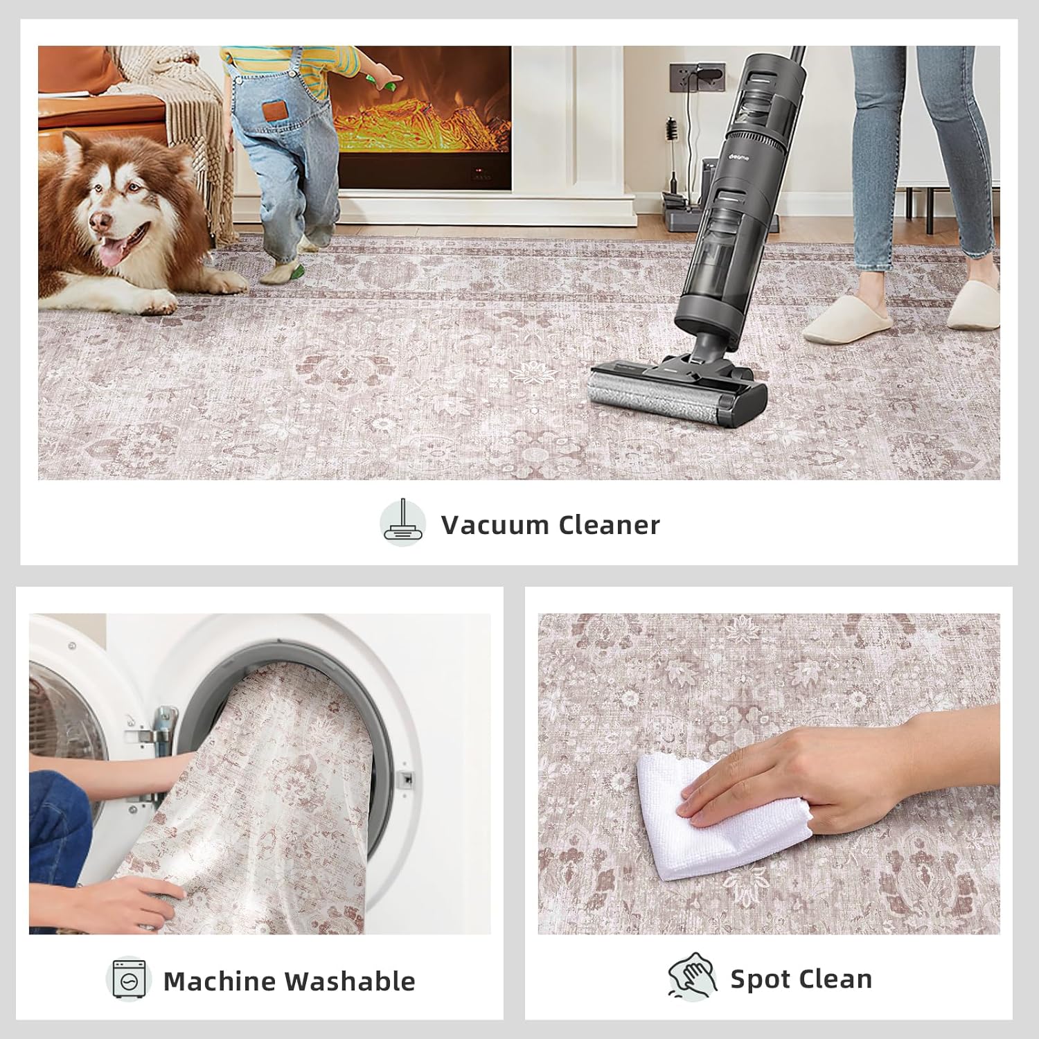 Light Pink Area Rugs 3x5 Nursery Rug for Baby Girl Neutral Floral Area Rug for Living Room, Vintage Boho Washable Rug Indoor Carpet for Bedroom Dining Room
