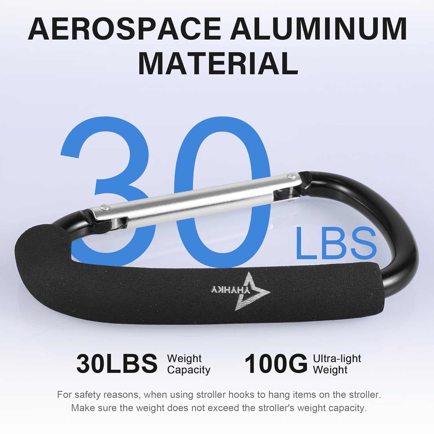 - 【Foam Grip & Aluminum】Built with high-strength aluminum alloy to ensure heavy duty carabiner performance, this Mummy Hook for Stroller includes a non-slip foam grip that prevents shifting and protects your handle from scratches