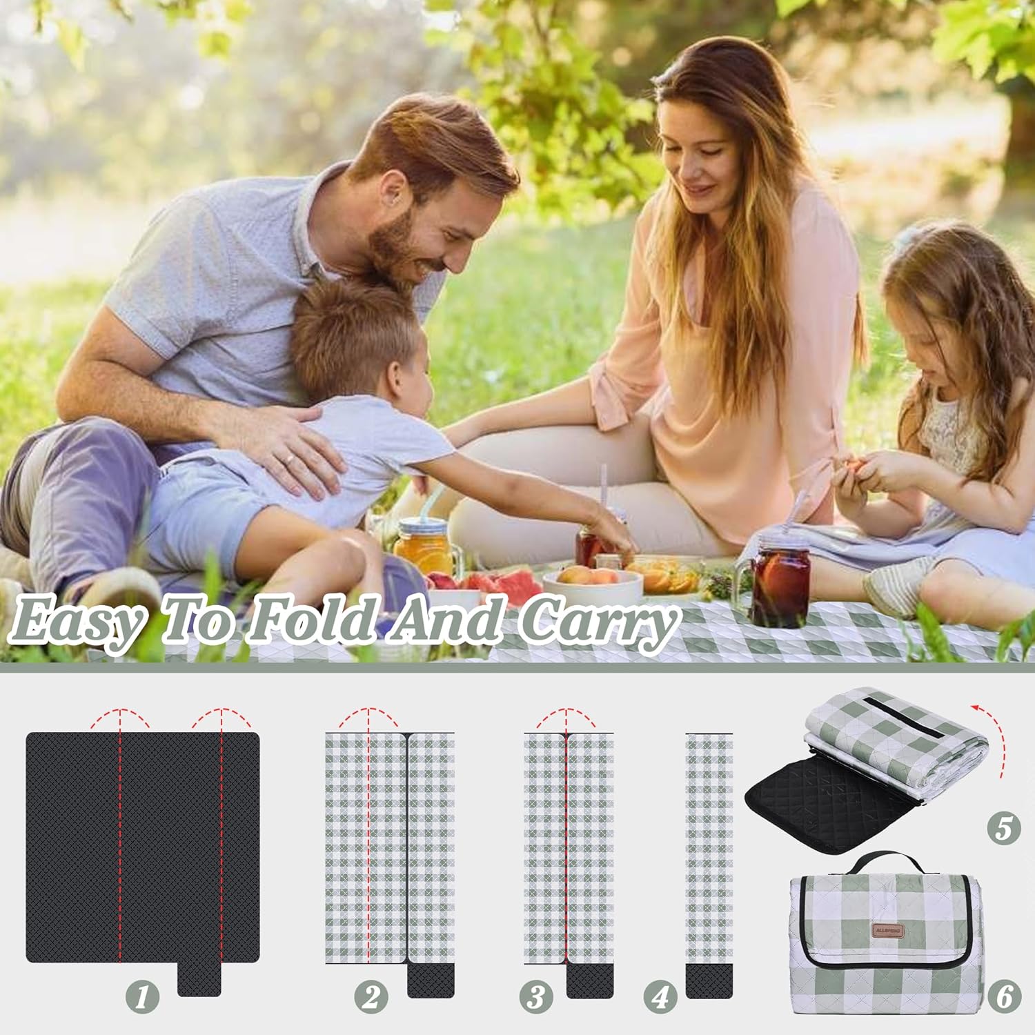 Extra Large Picnic Blanket 80''x 60'' Picnic Mat Waterproof Sand Proof Foldable for Beach, 5-Layer Outdoor Blanket for 6 to 8 Adults,Camping Lawn Hiking Travel Park Music Festival Wedding Mats(Green)