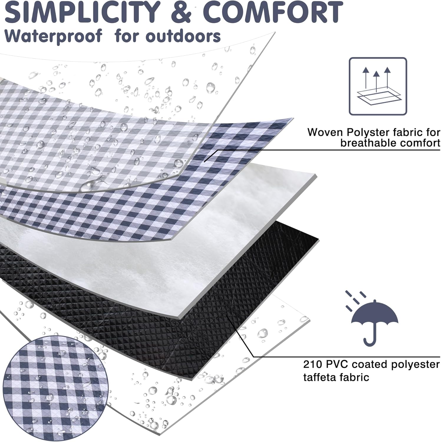 - Our large picnic blanket is made of 5-layer structure. The surface polyester is upgraded to be easily cleaned and scratched, and the mat is made of 100% polyester fiber inside, with waterproof coating on both sides: it is made of high-quality printed waterproof polyvinyl alcohol, prevents moisture on damp lawns or beaches. The pad is made of waterproof polyester material, which can prevent sand on both sides and is suitable for family outdoor activities.