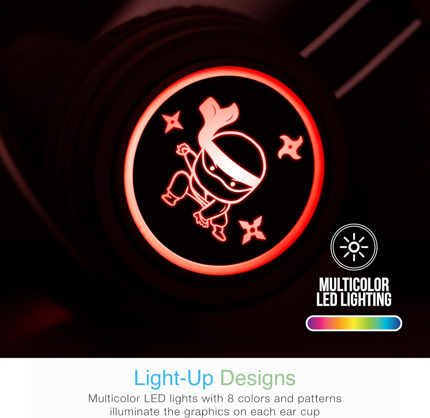 - LIGHT-UP DESIGNS & 4 AUDIO MODES: multicolor LED lights with 8 color patterns illuminate the graphics on each ear cup, giving each KidJamz headphone a vibrant and unique style; optional customization with a personalized name, graphic, or logo is also available; plus, 4 distinct audio modes let kids further personalize their listening experience at the touch of a button