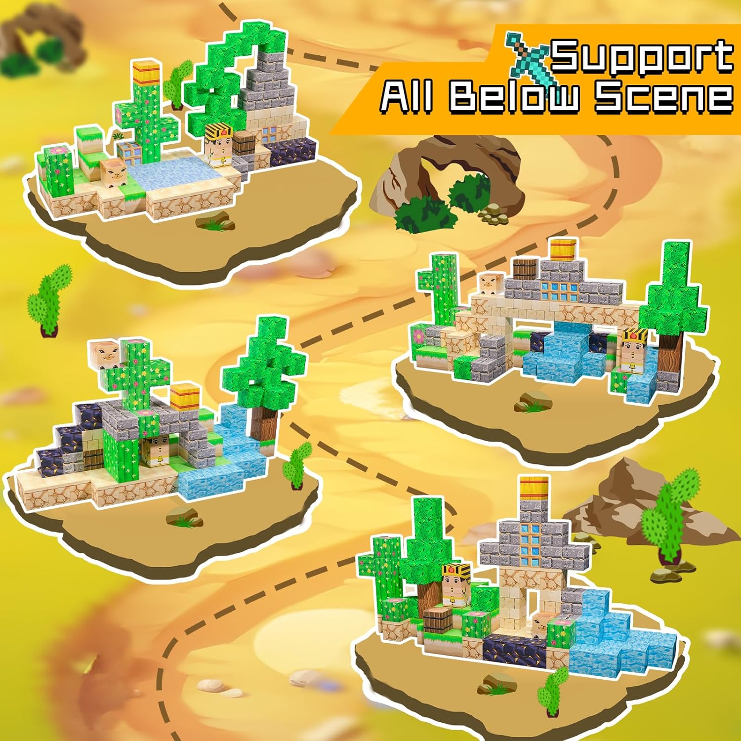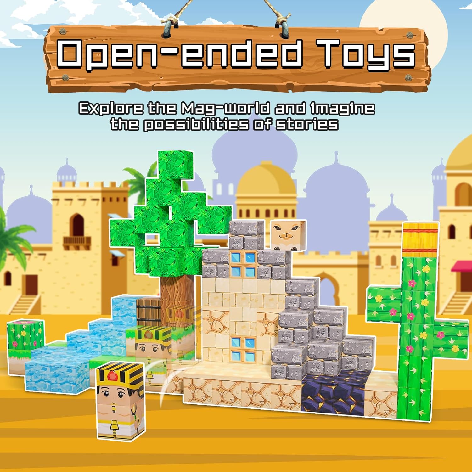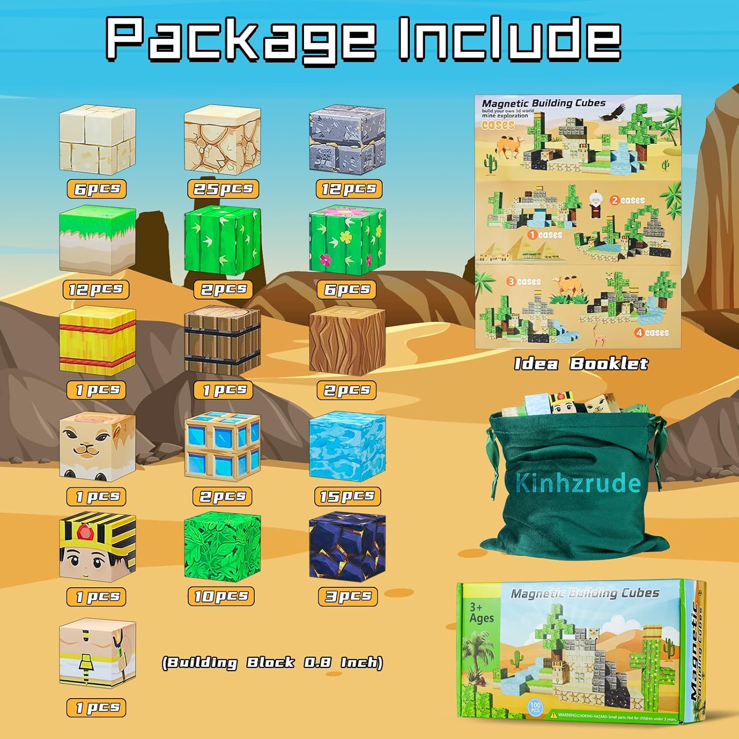 - 【Exciting 3D-World Adventure】Get ready to experience the fun of this magnetic cubes set! With a variety of designs like deserts, forests, blossoms, dinosaurs, rivers, and little monsters, kids can build their own 3D-world and foster creativity and innovative thinking as they explore different combinations and structures. Let's embark on an unforgettable journey!