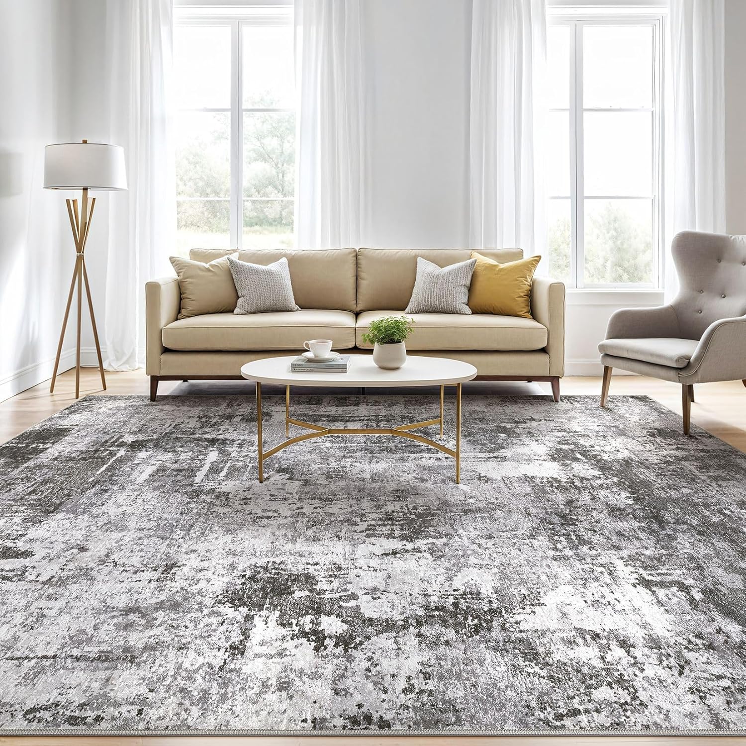 10x14 Area Rugs Living Room: Washable Large Abstract Modern Soft Rug Stain Resistant Indoor Floor Non Slip Accent Carpet for Bedroom Nursery Playroom Office Dining Room Dorm Home House- Black Grey