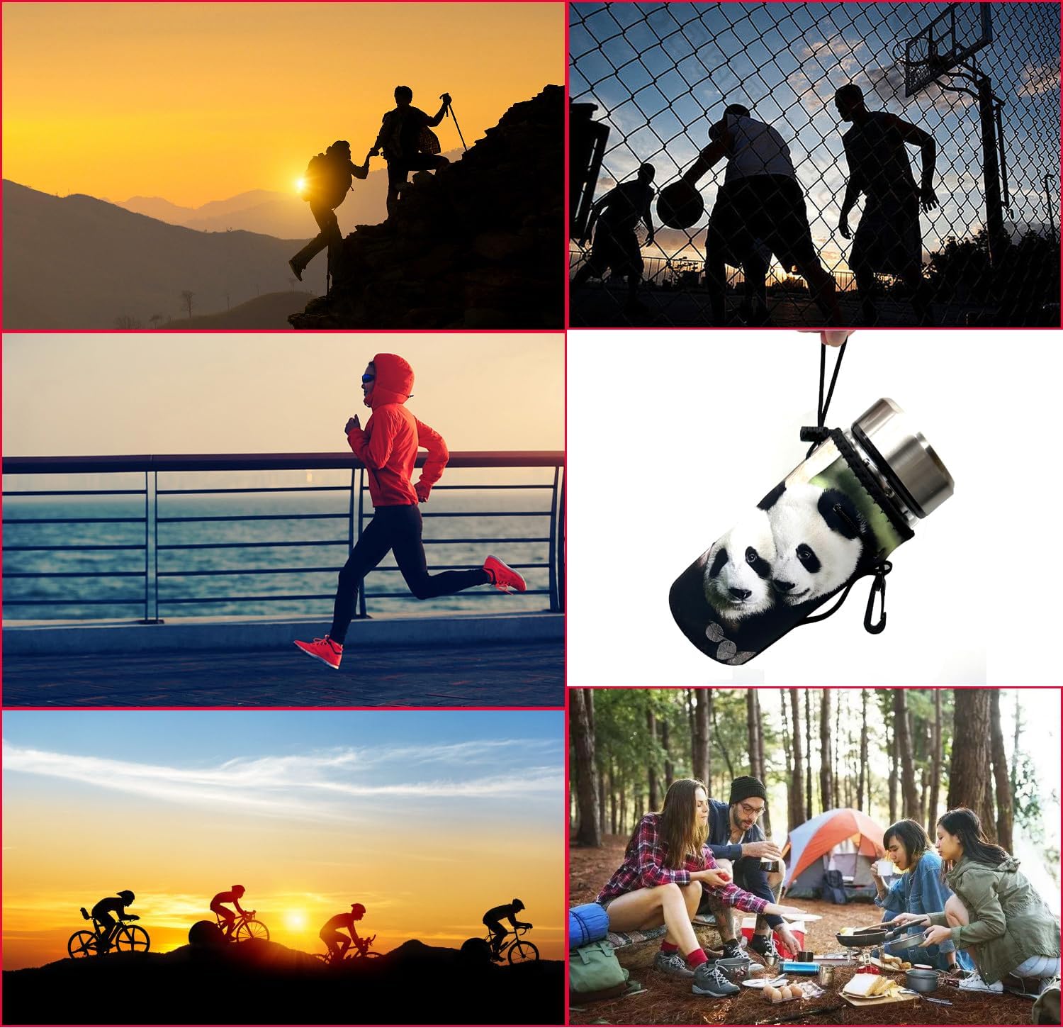Water Bottle Bag Carrier, Water Bottle Neoprene Sleeve Portable Insulator Bottle Cover Drawstring Insulator for 18 Oz 20 Oz Water Bottle (Panda)