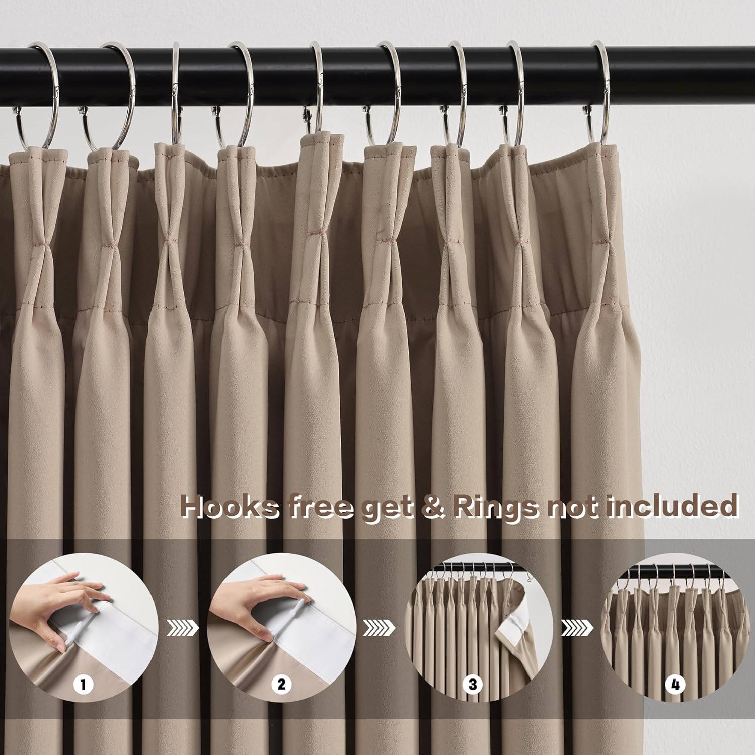 KEQIAOSUOCAI 60 Wide Pinch Pleated Window Curtain Panels 90 Inches Long Custom Made Pleated Curtains Hooks Track Privacy Memory Shape Drape for Living Room,Khaki, Set of 2=120 Inch Wide