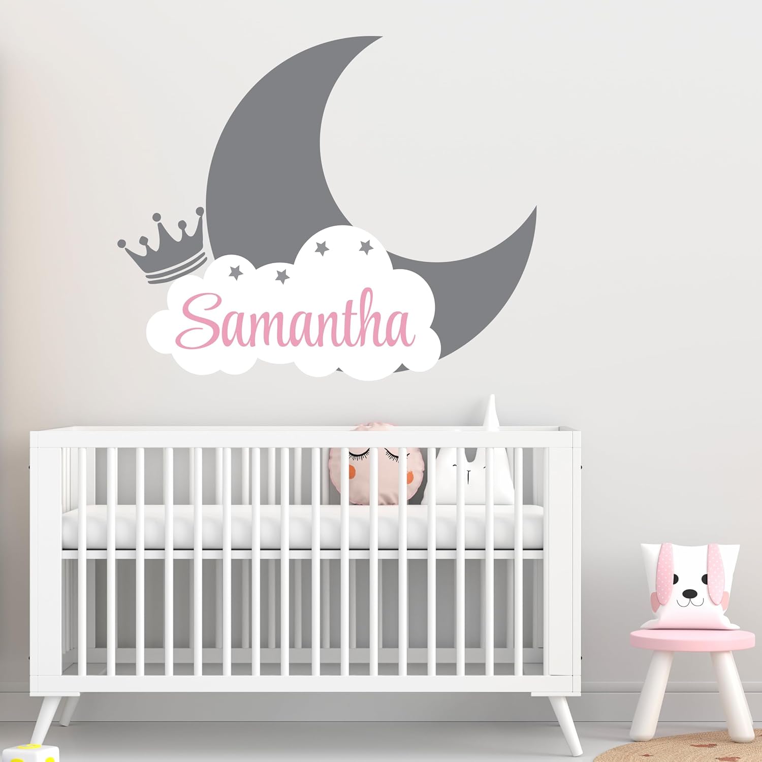 Personalized Name Moon & Cloud Wall Decal - Custom Baby Nursery Sticker - Peel and Stick Mural for Girls & Boys Room - Removable Vinyl Art Decor - Mural Decal for Nursery Decor (Wide 15"x12" Height)