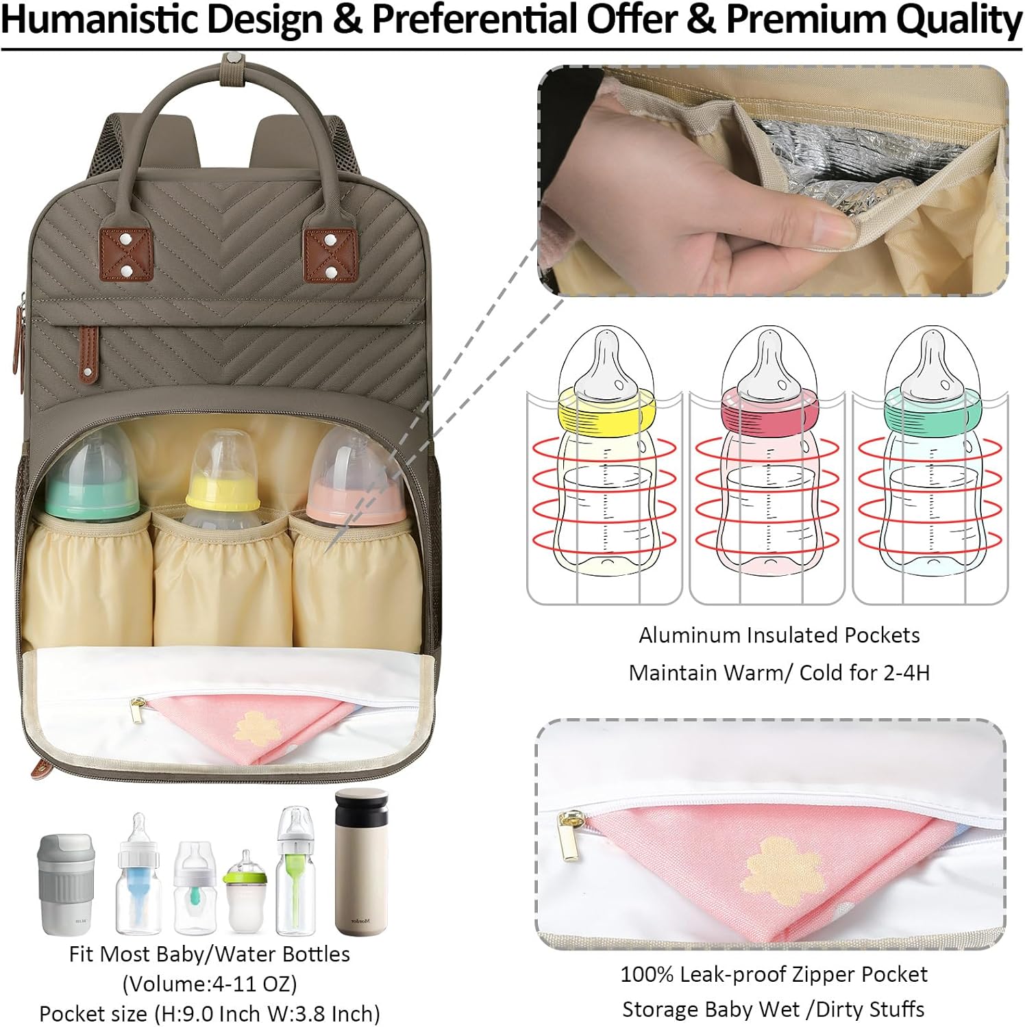 - Impressed With Overall: Tenot baby backpack diaper bag only 1.54 lbs, but comes with 10 pockets and spacious to keep diapers, breast pump, wipes, formula, toys, cell phones, baby bottles, books, laptop, clothes well organized; The quality is top-notch, strong zipper, sturdy stitching, detachable stroller straps; Especially has 3 insulated bottle pockets to keep warm/cold 2-4 H; This makes diaper bag purse very durable and will not easily fall apart; A good bet baby boy baby girl diaper bag