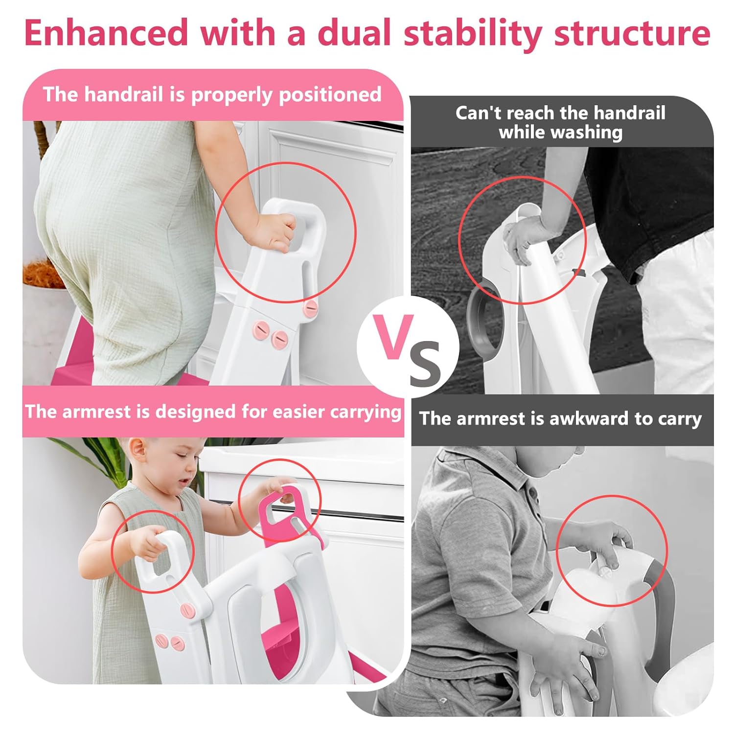 - Innovative 2 in 1 Functionality: The baby potty training toilet can not only help baby to complete toilet training successfully, but also can be used as a stepping stool to solve the problem of not being able to reach the sink and kitchen countertop due to lack of height