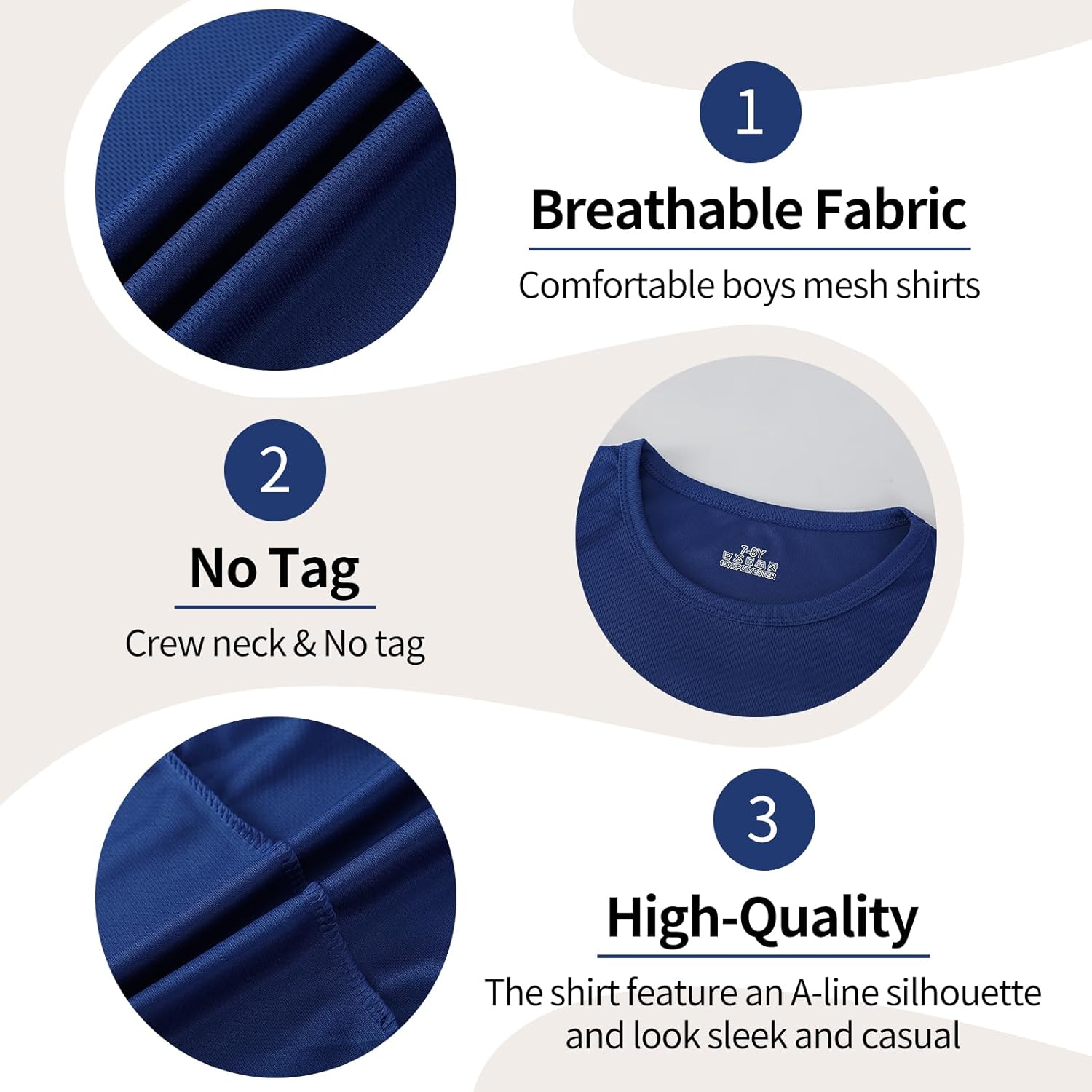- The boy's quick dry t-shirts made with 100% polyester, crafted from moisture-wicking, soft, and lightweight fabric