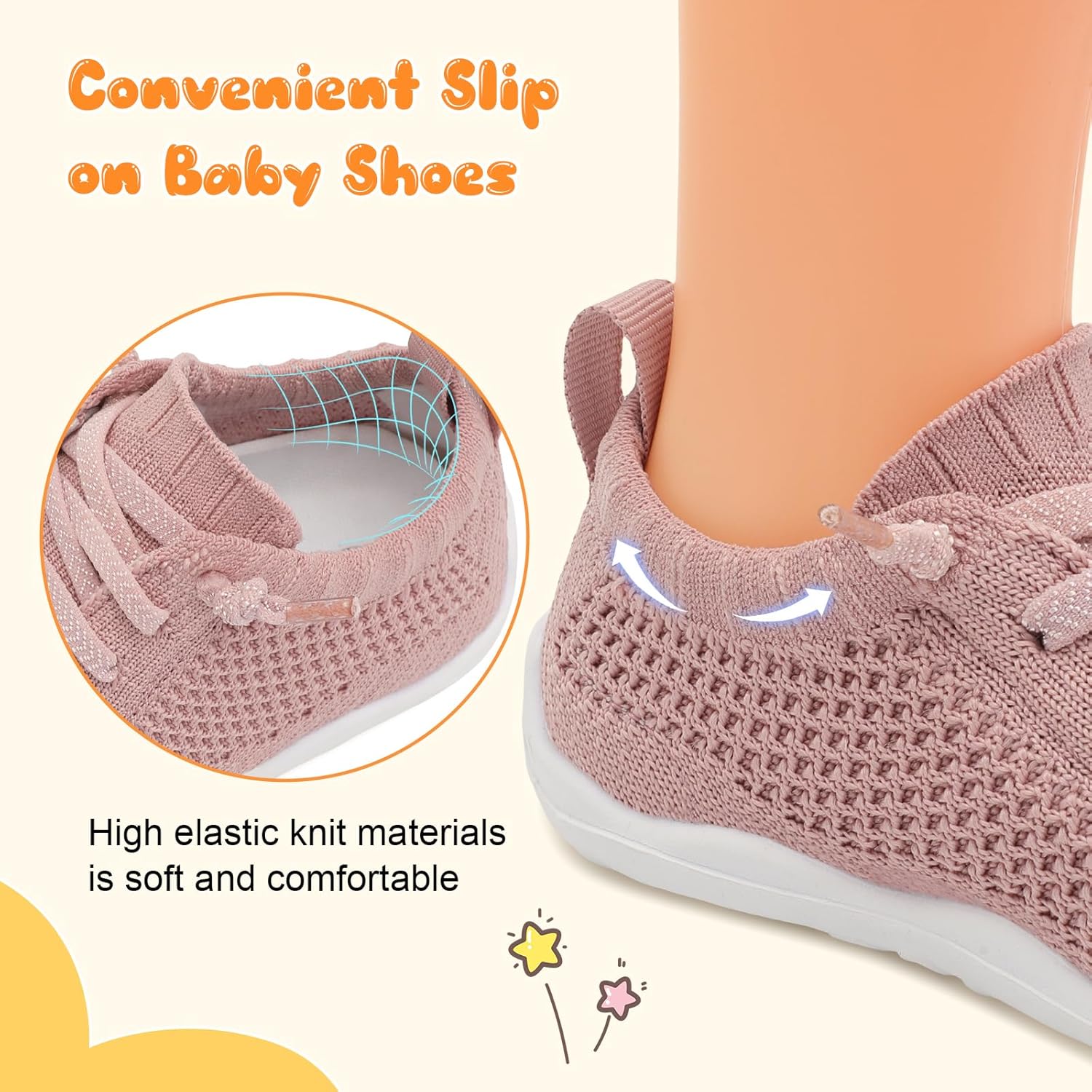 • LONG-LASTING COMFORT:Premium quality knitted upper and cushioned insoles make these baby walking shoes breathable and keep feet dry and comfortable