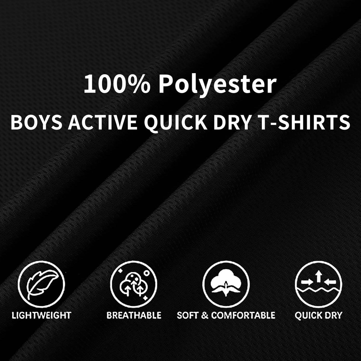 • The boy's quick dry t-shirts made with 100% polyester, crafted from moisture-wicking, soft, and lightweight fabric