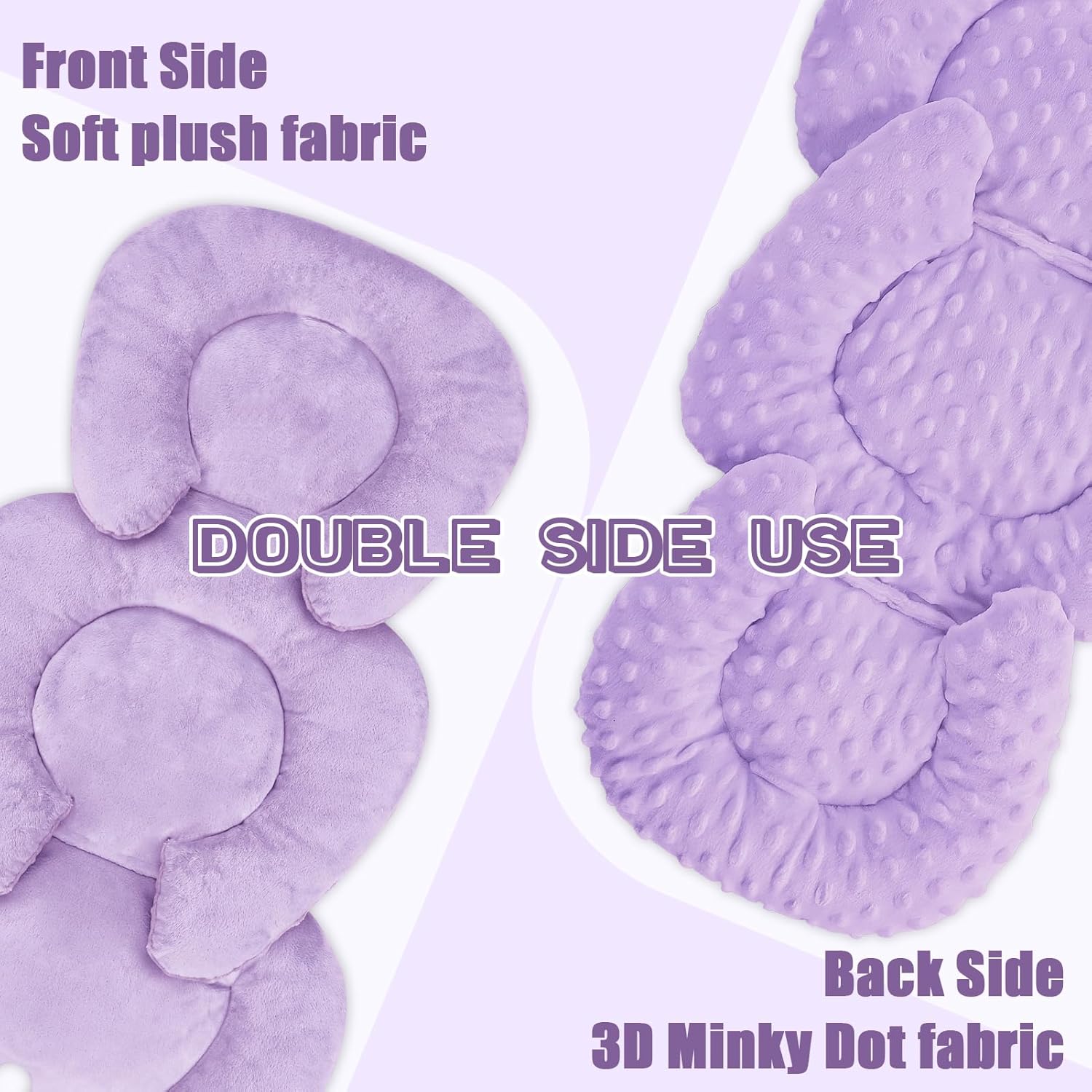 Infant Car Seat Insert Head and Body Support, GFU Reversible Newborn Insert for Carseat with Strap Pads, Soft Stroller Cushion Pillow Insert for Boys and Girls, Fits for Stroller, Swing, Purple