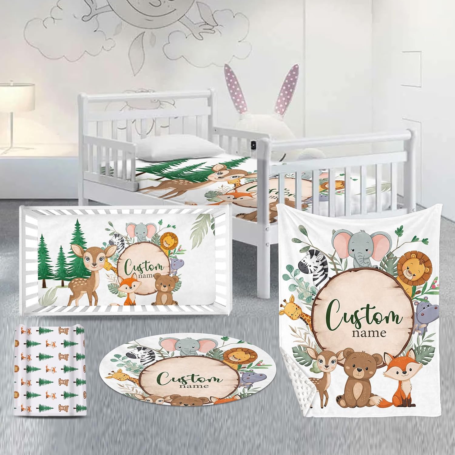 - 【Custom Gift】This baby girl crib bedding set with custom name makes a perfect gift for baby showers or birthdays. Give your little one a dreamy and comfortable nursery with our animals theme baby crib bedding set and nursery rug.