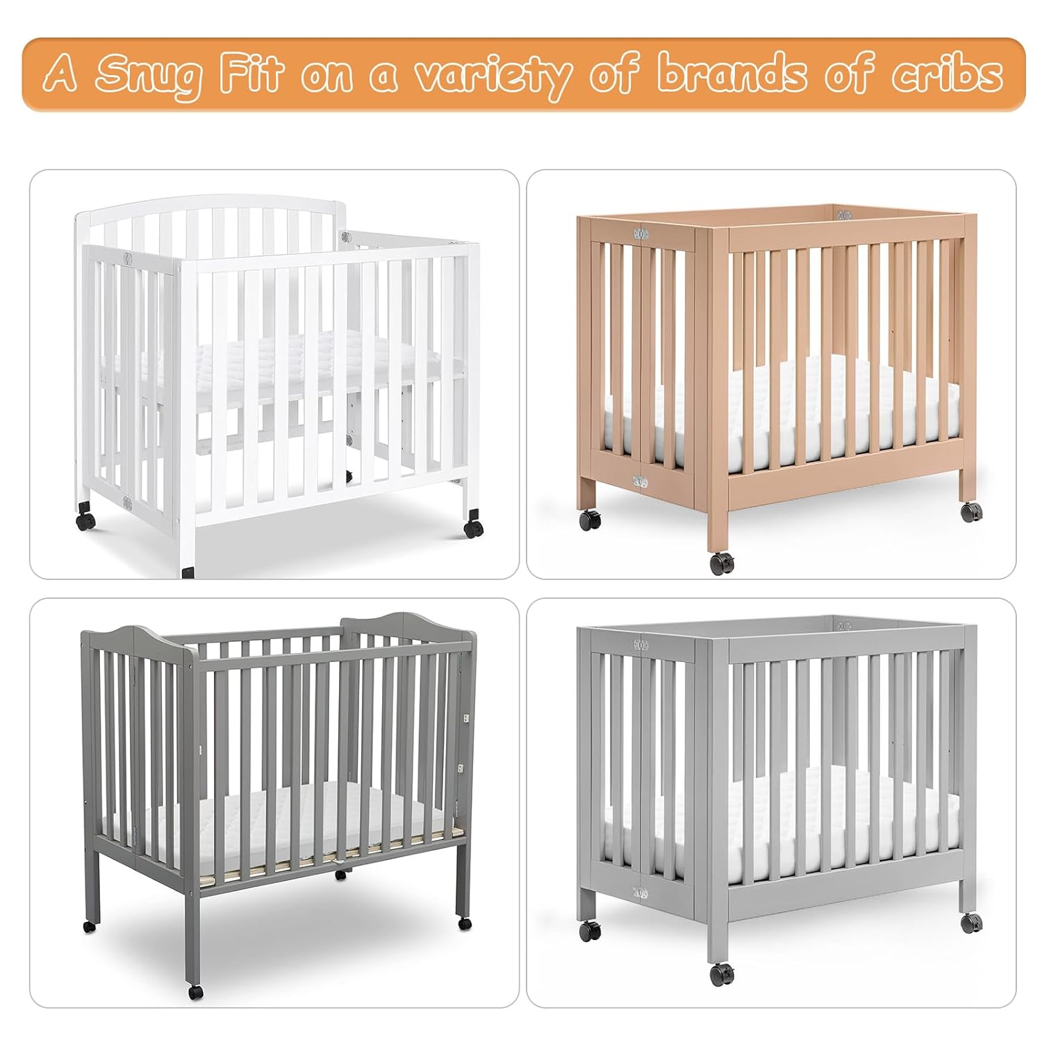 - FLEXIBLE FIT - Measures 38''x24'', designed specifically to fit standard mini crib of most brands. Deep pockets make sure the mattress cover universal fit mattress up to 4 inch thick. 2 pack mini crib mattress pads are much more affordable and make it more convenient for parents to change them at regular intervals.