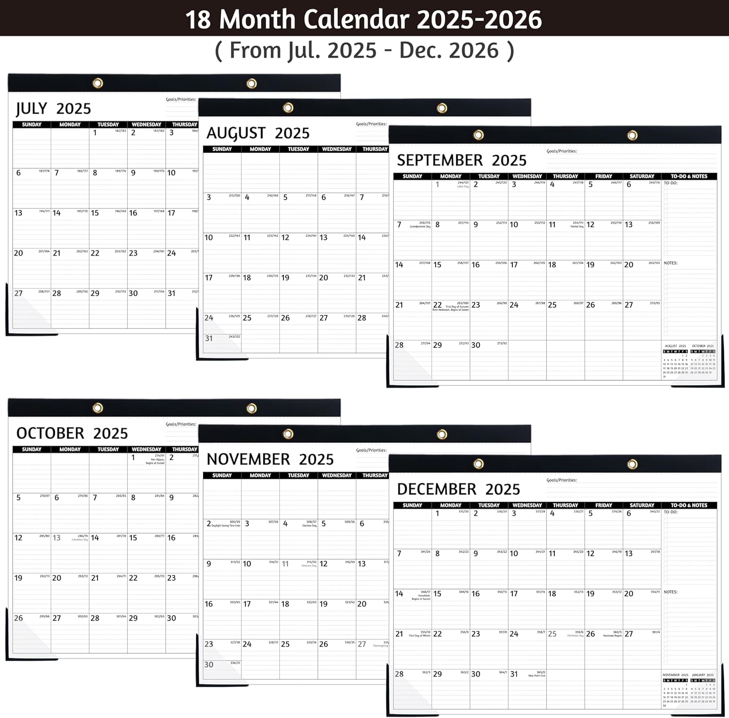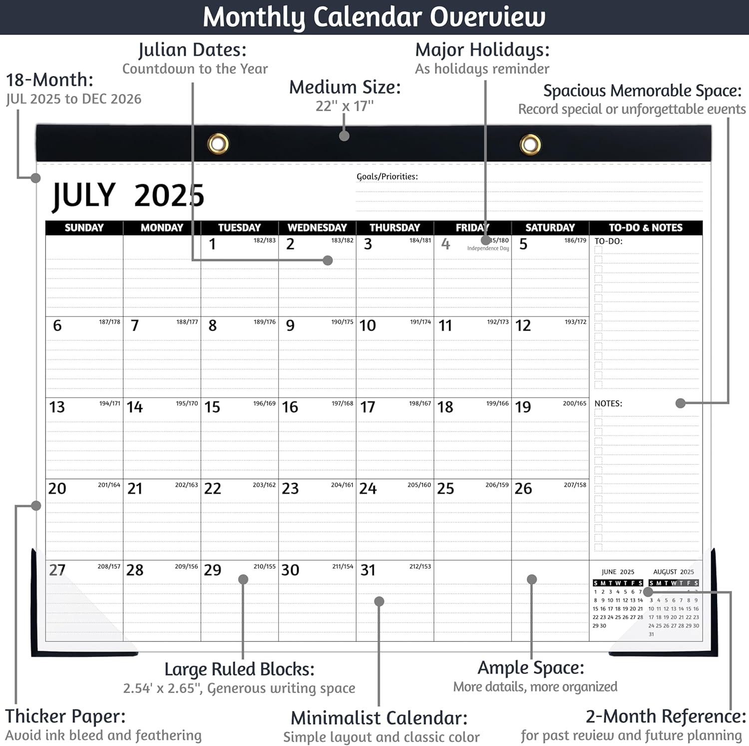 - π CLASSIC BLACK β Mysterious black, minimalist and business design for 18 monthly calendar pages make this large 2025-2026 wall/desk calendar a great decoration for your home, office, or classroom. A good reminder for 2025 οΌ 2026 to make you more efficient, effective and productive!