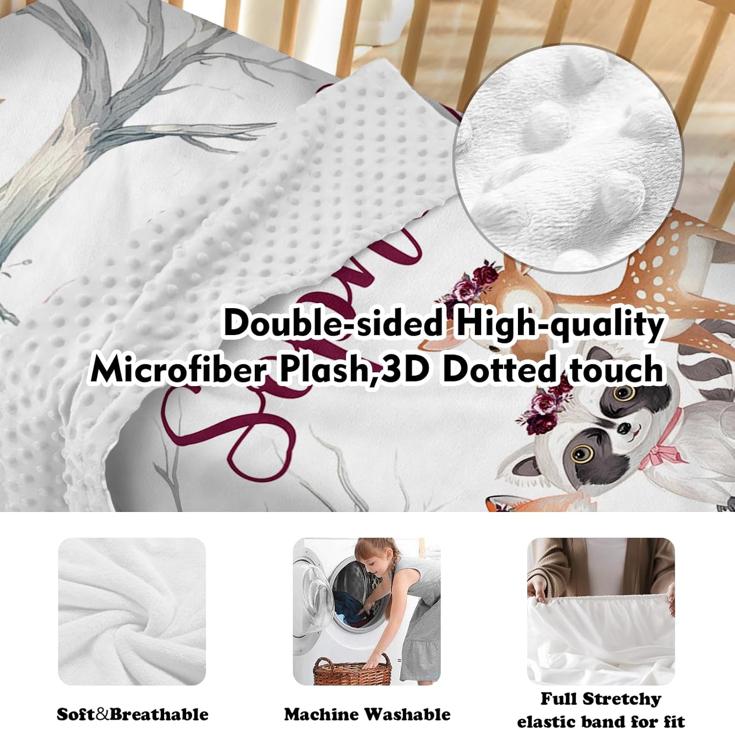 - Easy Care and Convenience: Our crib sheet, double layer blanket, and changing pad cover are all machine washable, ensuring easy cleaning and maintenance, suitable for busy new parents.