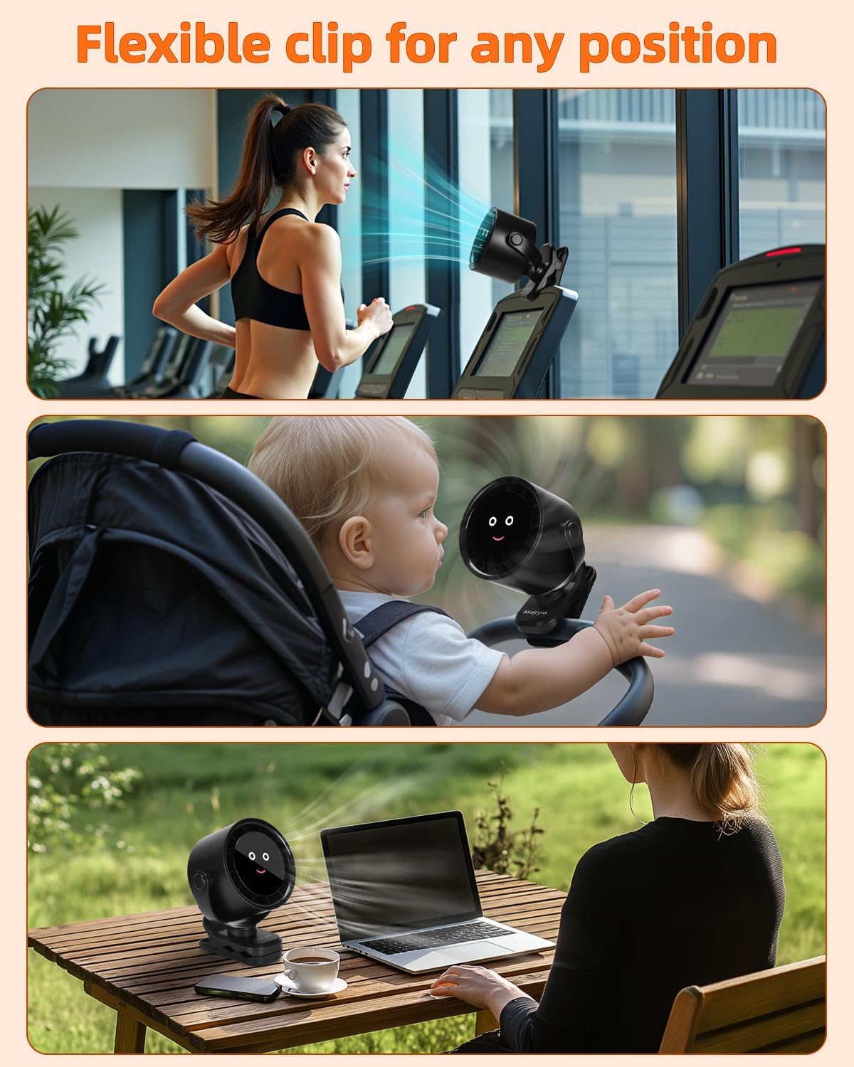 - 【360° Rotation and 5 Speeds】Akejrym Baby Stroller fan head can be adjusted vertically and horizontally in any direction, providing cool airflow from all directions to keep your baby comfortable in hot weather;It has 5 different speeds for different purposes, which is more comfortable for babies.