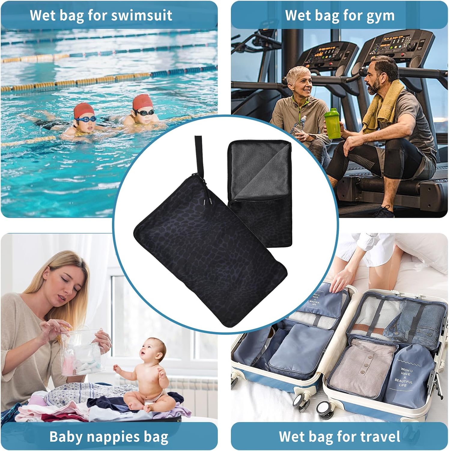 - Versatile Wet Bag for Swimsuit: Use it for swimsuits, diapers (holds 8-10), or breast pump parts. Folds compactly to store changing pads & bibs—fits in strollers or backpacks.Use as a wet bag, makeup bag, sanitary napkin bag, wash bag, coin purse, snack bag, travel bag, storage bag, cosmetic bag, handbag, cloth diaper, smell proof backpack, swimsuit bag, beach bag.