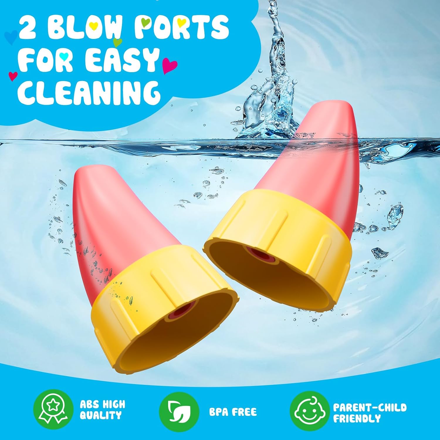 - Dual Replaceable Mouthpieces for Flexibility: Includes an adjustable strap so kids can carry the toy easily wherever they go. Comes with two interchangeable horn blowers, roviding a hygienic option for group play