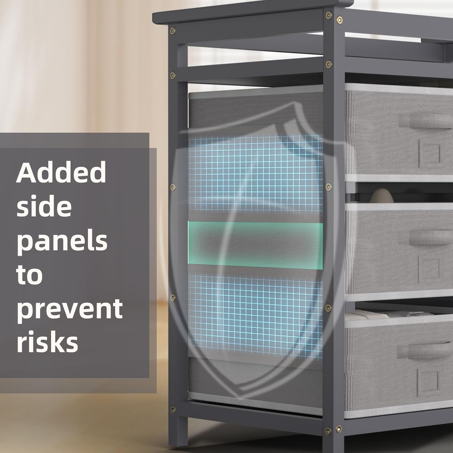 - 2-in-1 Changing Table: This baby changing table dresser contains 3 large and 3 small storage baskets, which can be used as a diaper changing station and a storage dresser. You can change diapers for your baby on the table, while you can also place diapers, baby supplies or other things in the cabinet. The multifunctional design ensures long-term use, making it a valuable addition to your nursery furniture collection.