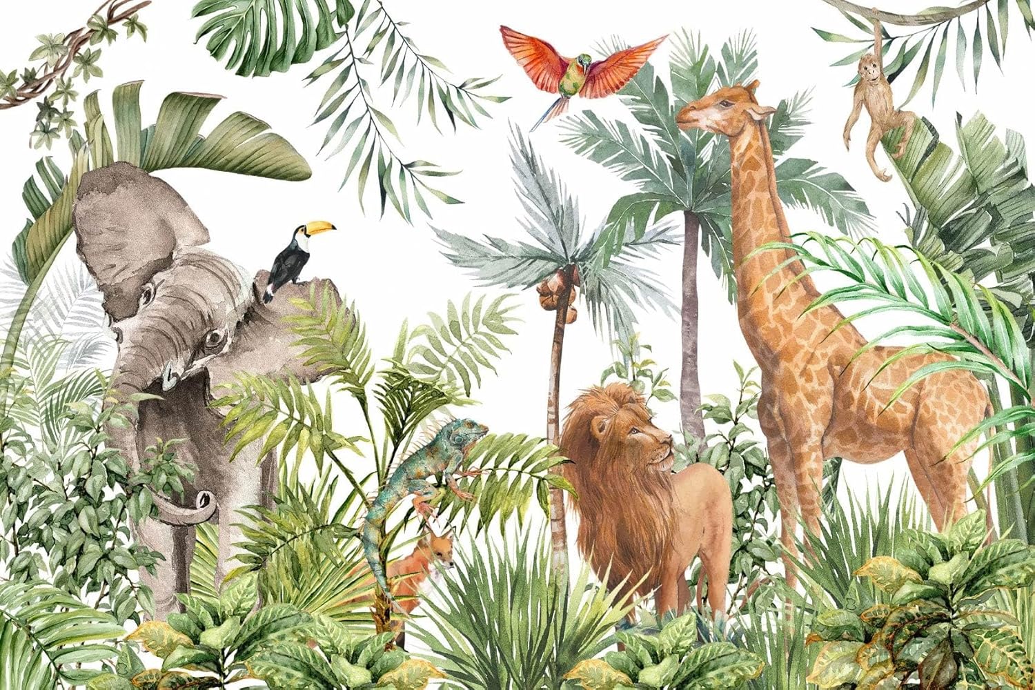 Kids Safari Giraffe Wallpaper Tropical Palm Tree Jungle Forest Plants and Animals Wall Mural for Nursery Living Room Bedroom Dining Room Basement(Not Self-Adhesive)