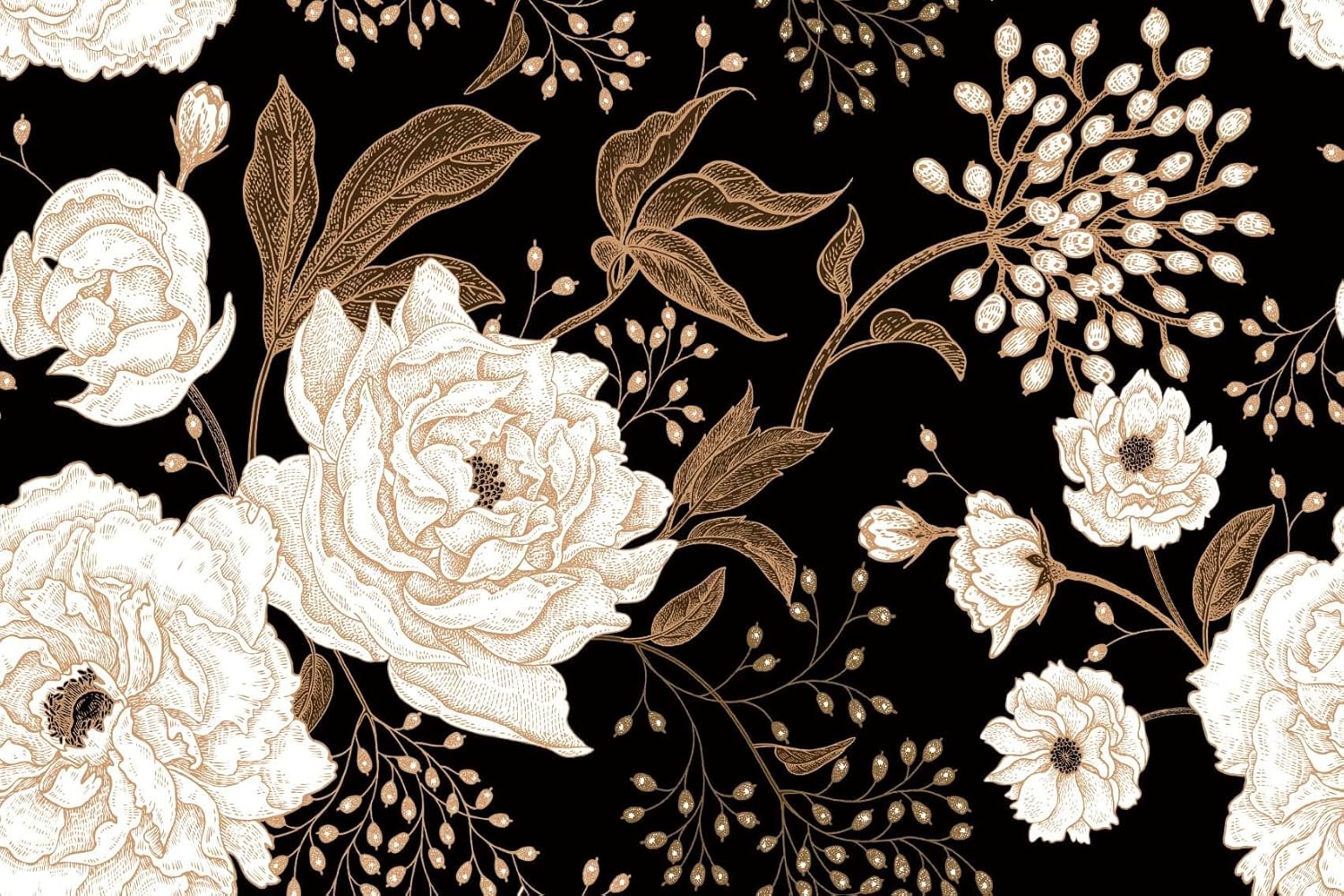 Vintage White Rose Floral Wallpaper Peony Wall Mural Large Black Background Wall Decor for Living Room Bedroom Dining Room Basement(Not Self-Adhesive)