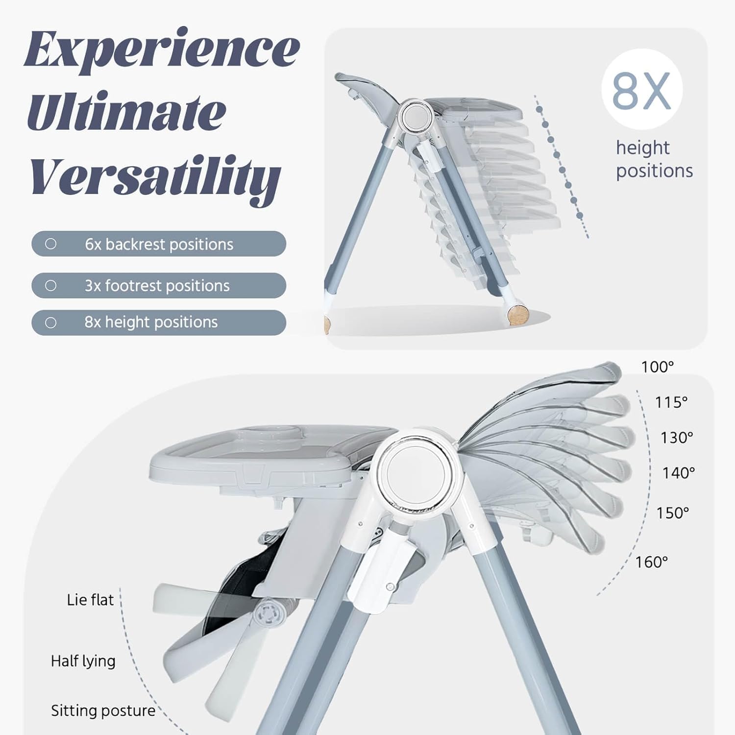 - 4.Flexible Adjustments: Features 8-level height adjustment, 4-level backrest recline, and a 5-position extendable tray to grow with your child.