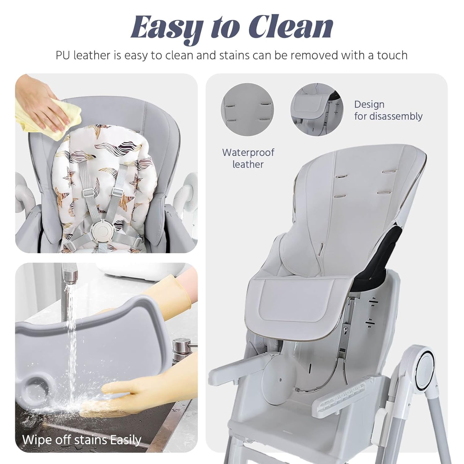 - 5.Easy to Clean: Eco-friendly PU cushion is soft, odor-free, and stain-resistant. Double-layer detachable tray makes cleaning effortless, saving parents time and effort.