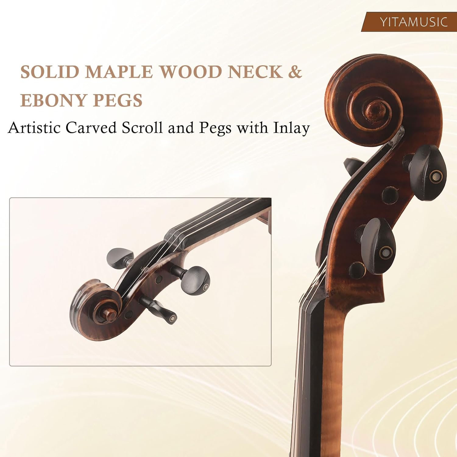 - Fitting:Ebony Fingerboard Hard-carved .Ebony pegs,Chin rest,ebony tailpiece , 4 tunes , German technology alloy steel strings.Ready to play.