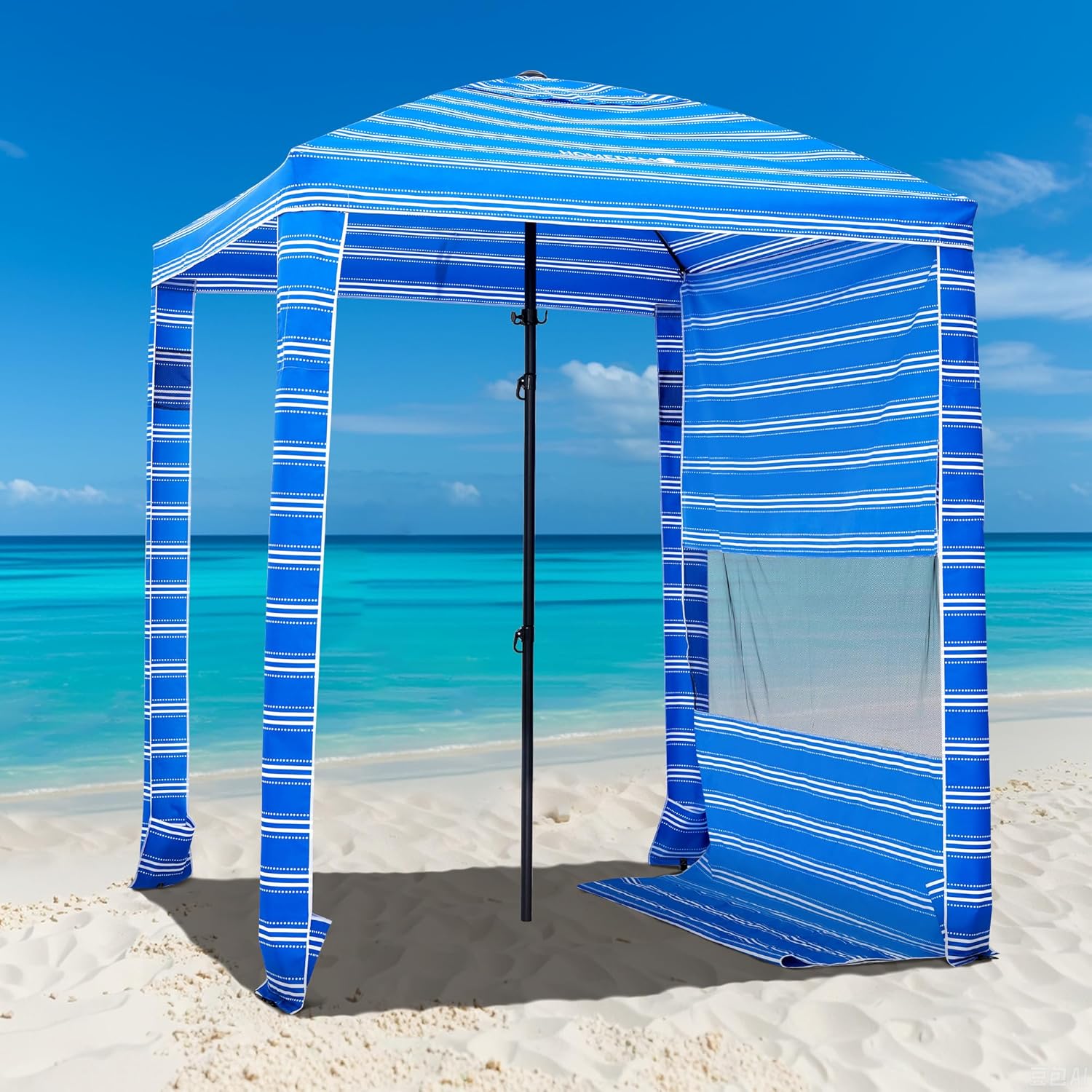 - New Upgrade in 2025: Each beach tent comes with a Removable Sidewall. There are numerous pockets under the Sidewall where you can put sand to hold the sunshade in place. This not only provides you with a more private space but also blocks the sunlight from the side. The Sidewall is detachable. The enlarged sand anchors are firmly fixed on the beach and won't be blown down by the wind, offering you an excellent beach experience.