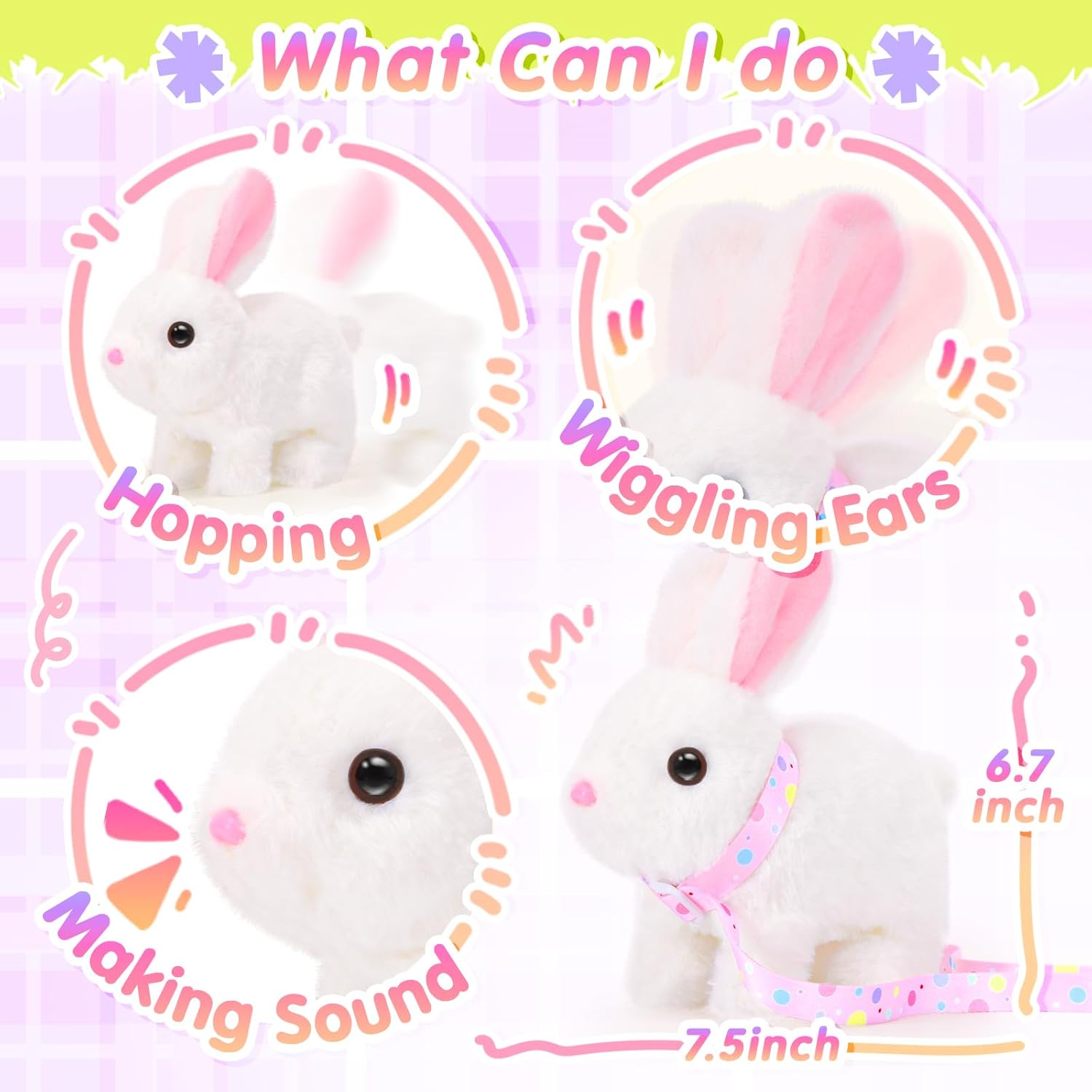 - Lifelike Bunny Shape: Not only does it have a vivid and cute bunny shape, it can also jump, twitch, swing its ears, and make sounds like a real bunny. It can stimulate children's imagination, cultivate love, and become the child's closest partner