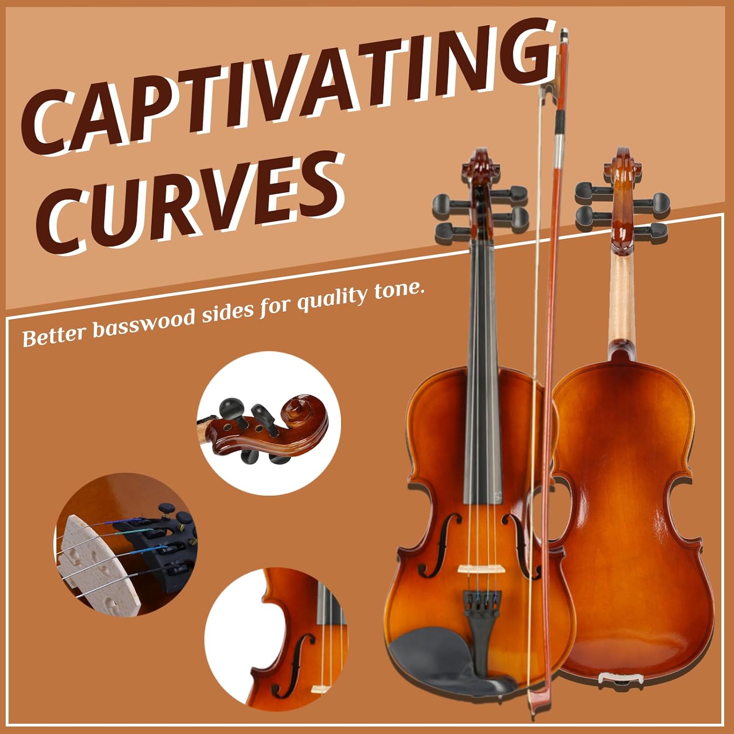- 【Complete Outfit with Accessories】 The violin package includes essential accessories such as a bow, rosin, and a sturdy violin case, providing everything you need to start playing and protecting your instrument right away. What's more, the soft inner padding of the case can provide you with safe transportation