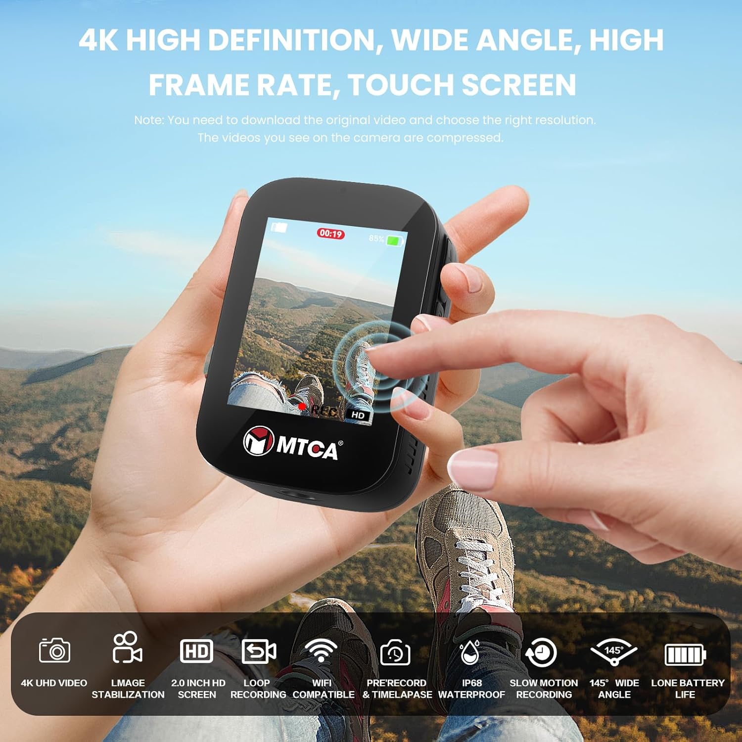 asika 4K Ultra HD Action Camera with Touch Screen-Waterproof Sports Camera,6-Axis Gyro Stabilization,145° Wide-Angle,Loop Recording for Vlogging,Cycling,Motorcycle(Supports Time-Lapse/Pre-Record)
