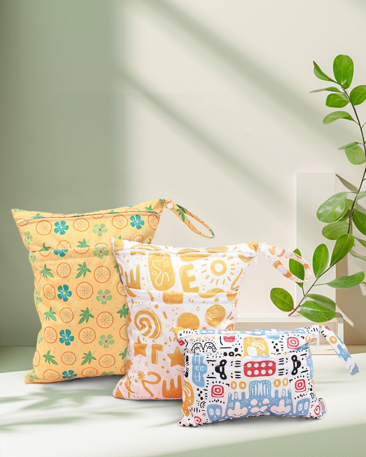 ALVABABY 3 Cloth Diaper Wet Dry Bags Waterproof Reusable with Two Zippered Pockets Travel Beach Pool Daycare Soiled Baby Items Yoga Gym Bag for Swimsuits or Wet Clothes Small medium Large 3L-SML05