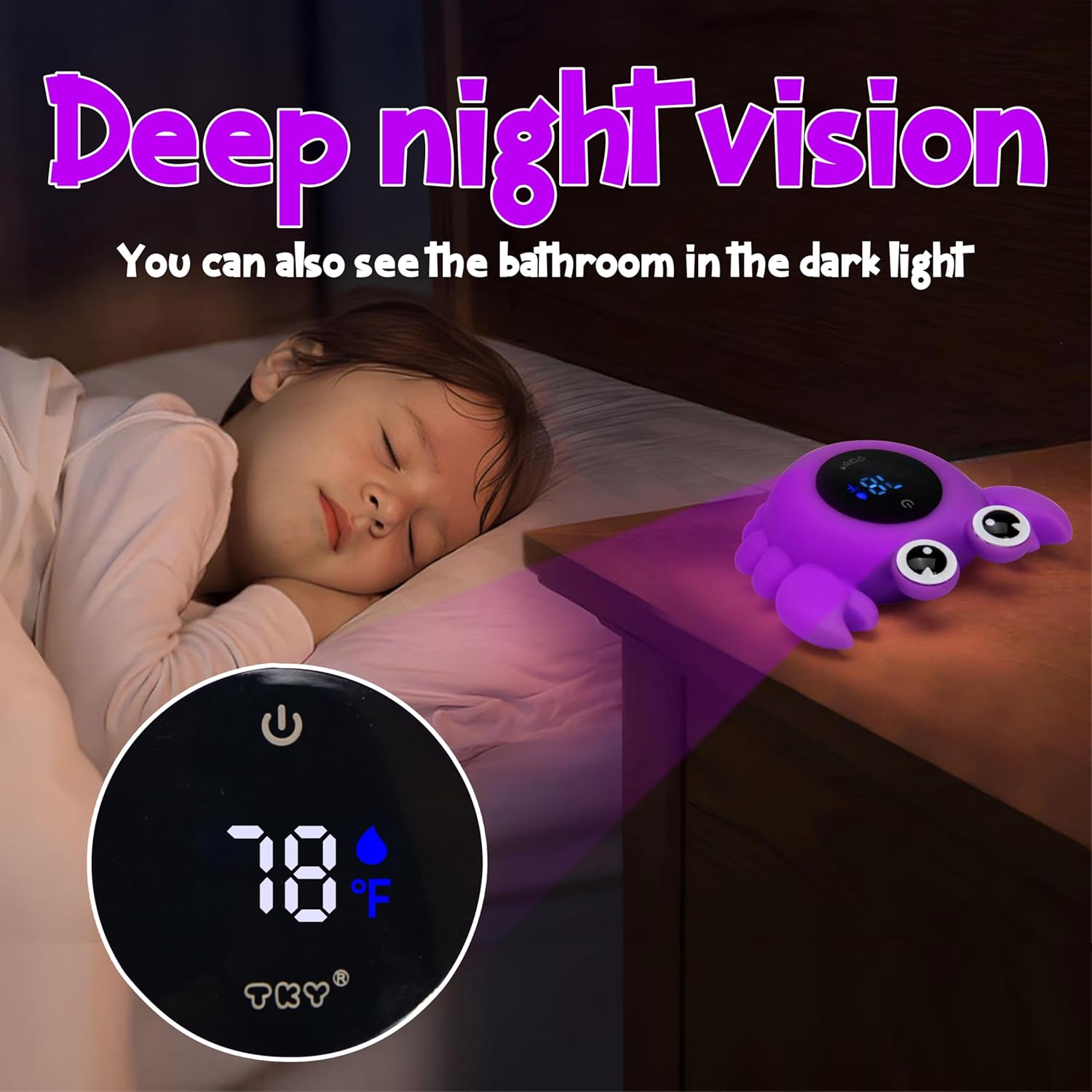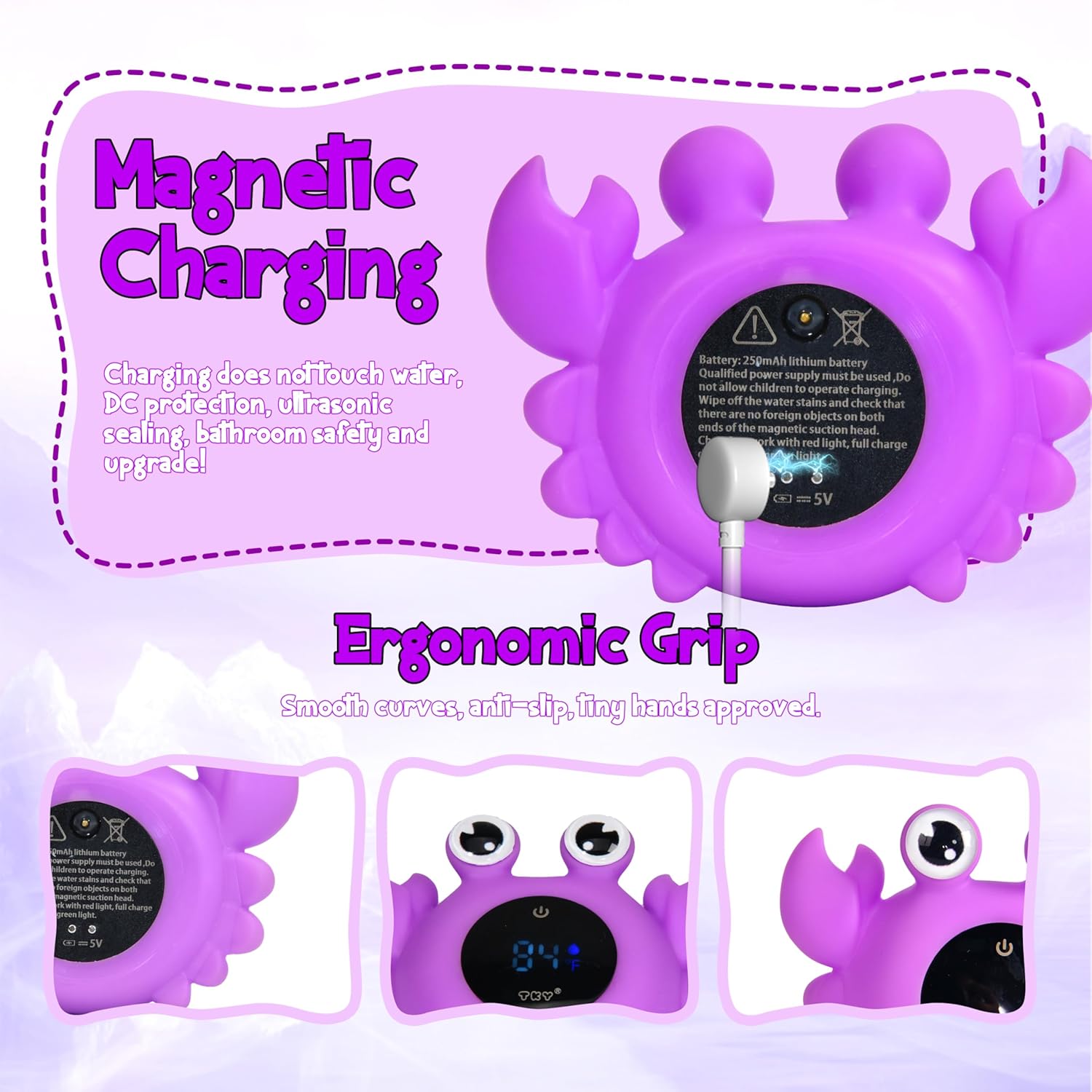 TKY Baby Bath Thermometer with Floating Toys & Room Temperature Monitor - Rechargeable Digital Thermometer with Temperature Alerts, Bath Essentials for Newborns, Infants Crab (Purple)