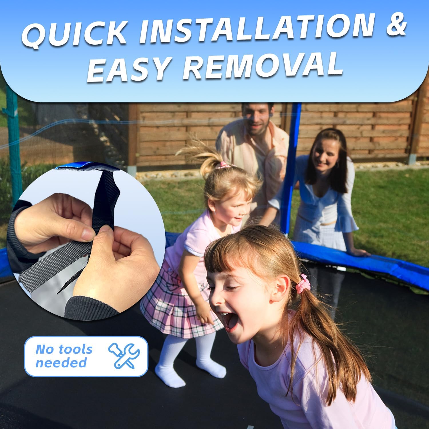 - Quick Installation and Removal: With a simple and easy design, the outdoor trampoline safety pad can be installed or removed in just about 5 minutes, making it easy for quick trampoline use and convenient storage