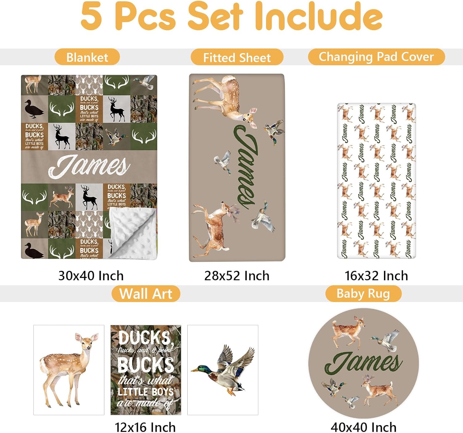 - Complete Set: This customized baby bedding set includes a double layer dotted backing blanket, crib sheet, changing pad cover, baby rug and wall arts, designed to add style and comfort to your nursery. The dotted backing of the double-layer blanket will be adored by your little one.
