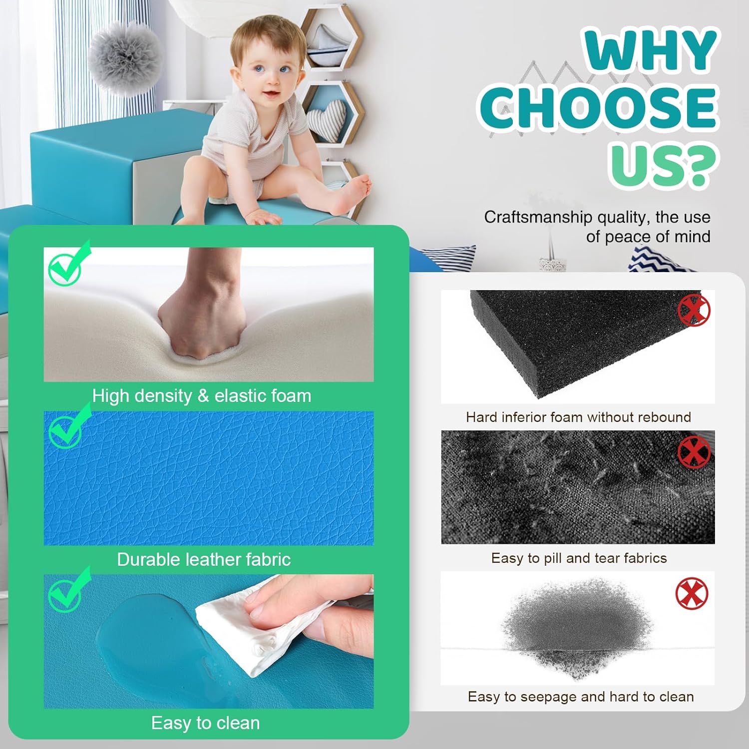- Fun and Educational: Our climbing blocks with tunnel offer los of fun and educational benefits. The vibrant green and blue color and engaging design of the foam blocks for climbing attract toddlers, while the diverse play elements help vibrate skills