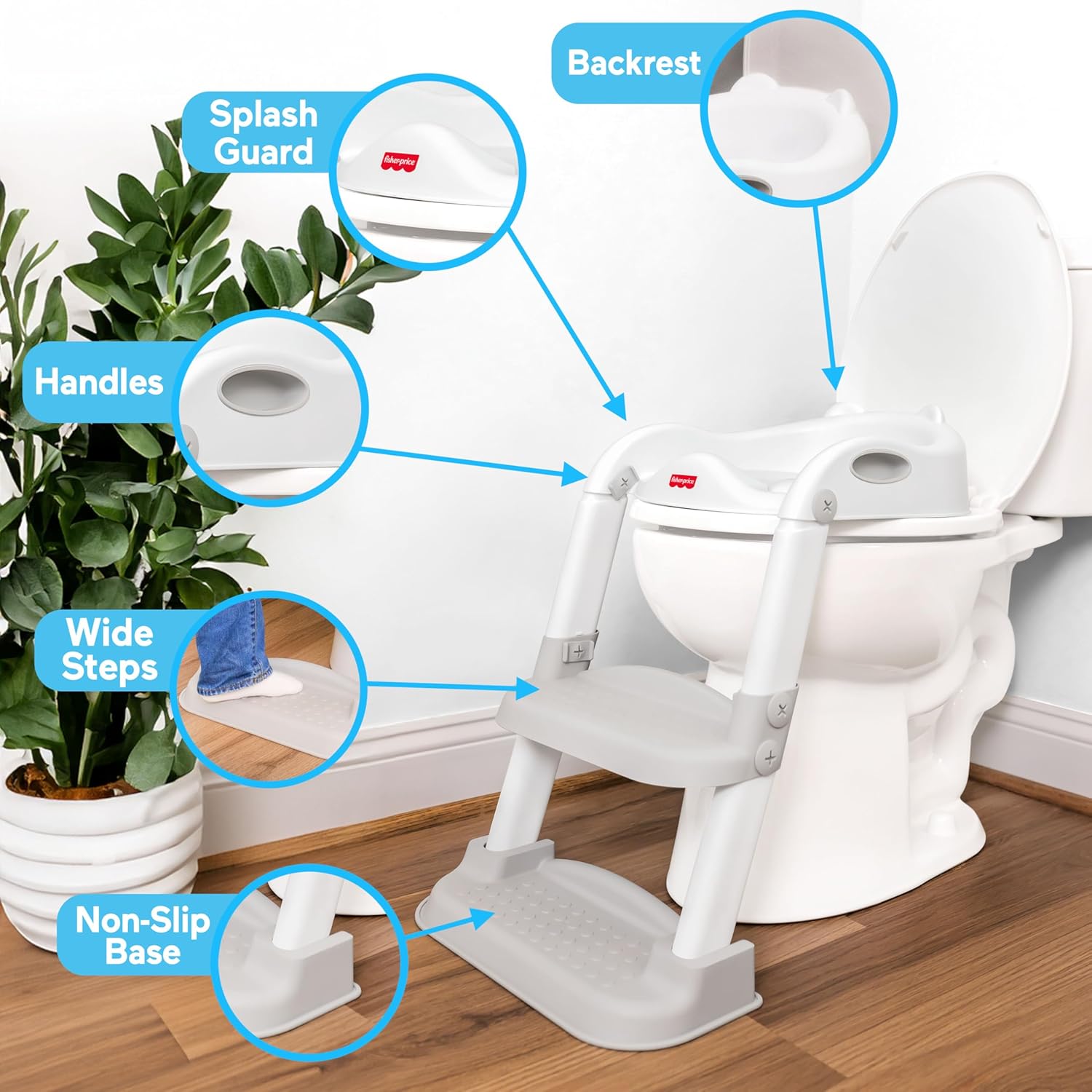 Fisher-Price™ Potty Training Seat with Step Stool Ladder, 2-in-1 Potty Training Toilet for Toddlers with Splash Guard, Anti-Slip Pads, Cushioned Seat (Gray)