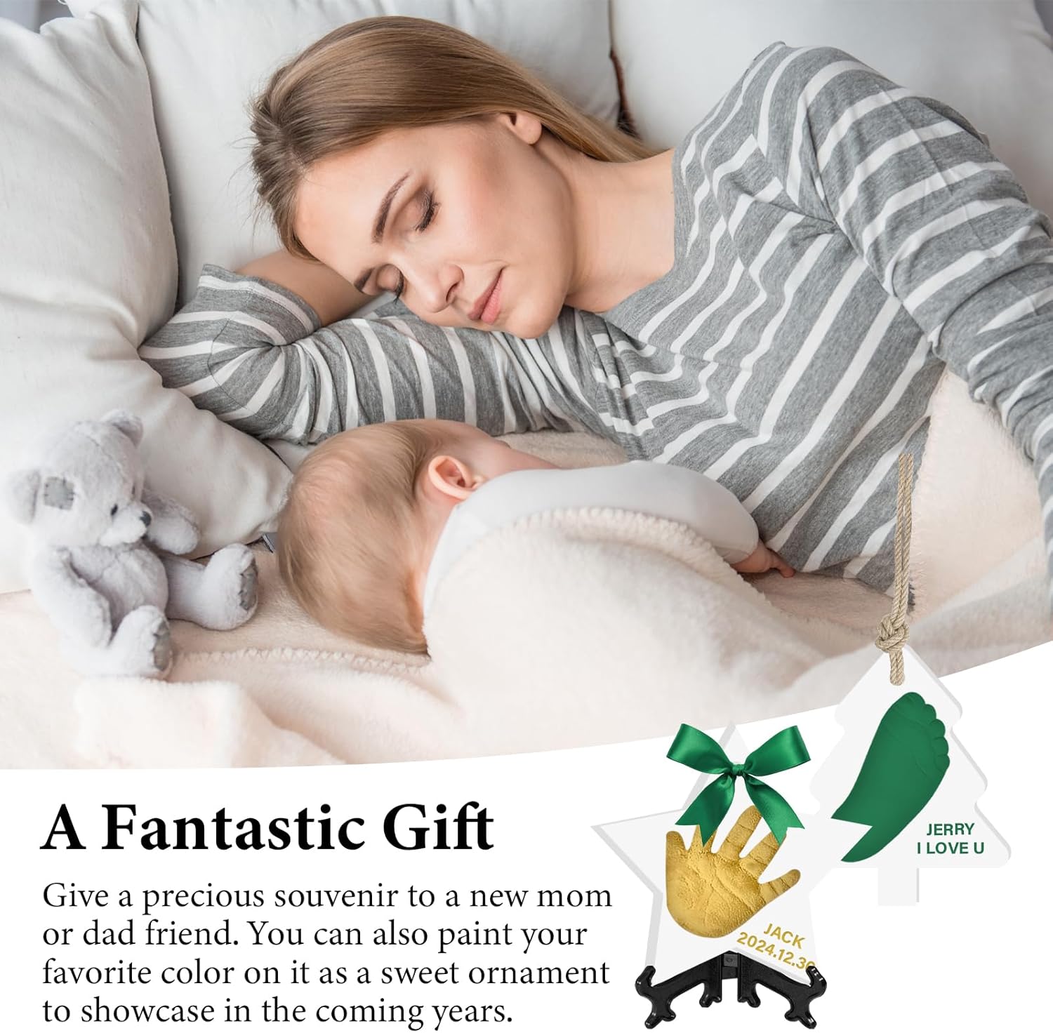 Baby Hand & Footprint Keepsake Kit - Personalized Handprint Footprint Ornament for Newborn Babies, New Mom Gifts, Baby Shower & Registry, Nursery Picture Frame, Pet Paw Print Ornament