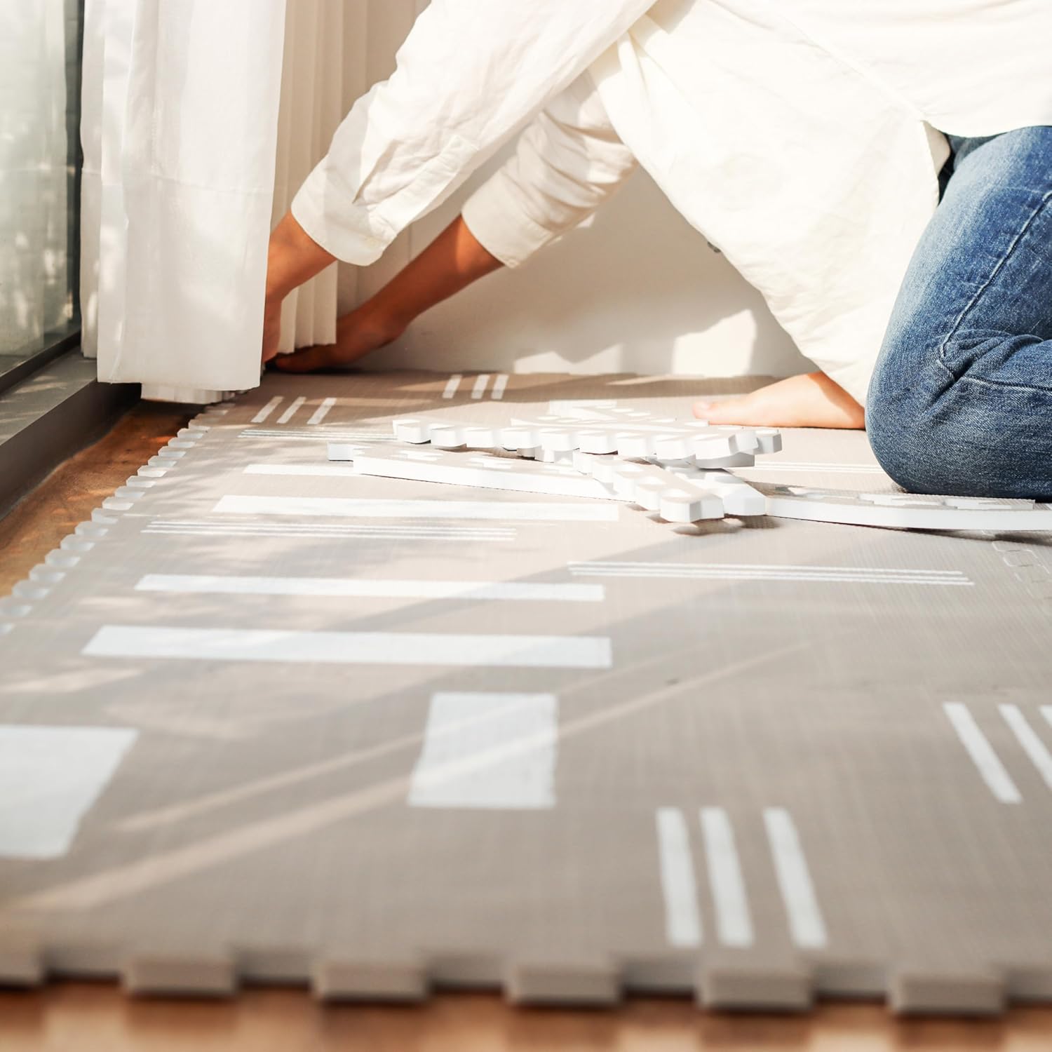 - β MAKES ANY ROOM A SAFE SPACE - Our play mat is not just a regular mat, it's an entire play area for your child. It's perfect for playrooms, living rooms, and even outdoor use. They protect from bumps and bruises and are great for hardwood floors, marble floors, or low pile carpet. The mats can be easily stored or quickly put together so there's always plenty of room for your little one to roll, crawl, and explore.