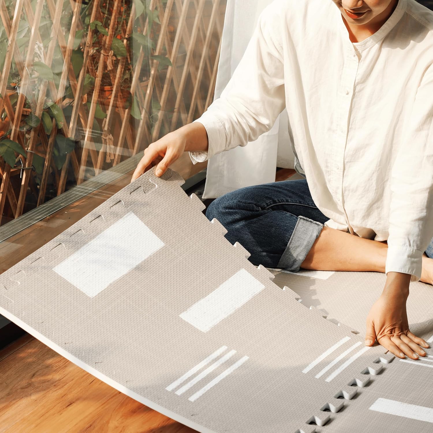 - β MAKES ANY ROOM A SAFE SPACE - Our play mat is not just a regular mat, it's an entire play area for your child. It's perfect for playrooms, living rooms, and even outdoor use. They protect from bumps and bruises and are great for hardwood floors, marble floors, or low pile carpet. The mats can be easily stored or quickly put together so there's always plenty of room for your little one to roll, crawl, and explore.