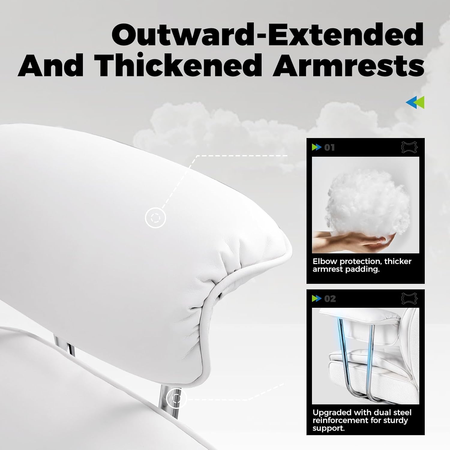 - 【Durable and Stable Construction】Equipped with a BIFMA-certified five-star base that supports up to 300 lbs, and an SGS-3 gas lift certified for over 120,000 lift cycles. Compared to nylon armrests, the metal armrest frame offers superior strength and durability. The wide seat and high backrest accommodate users of various body types.
